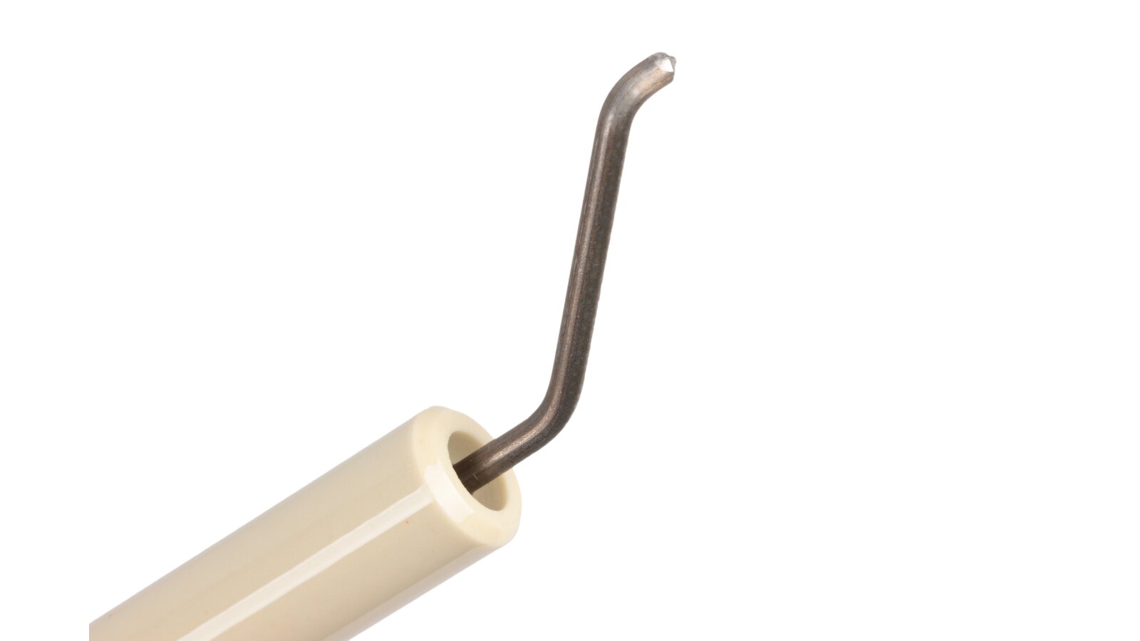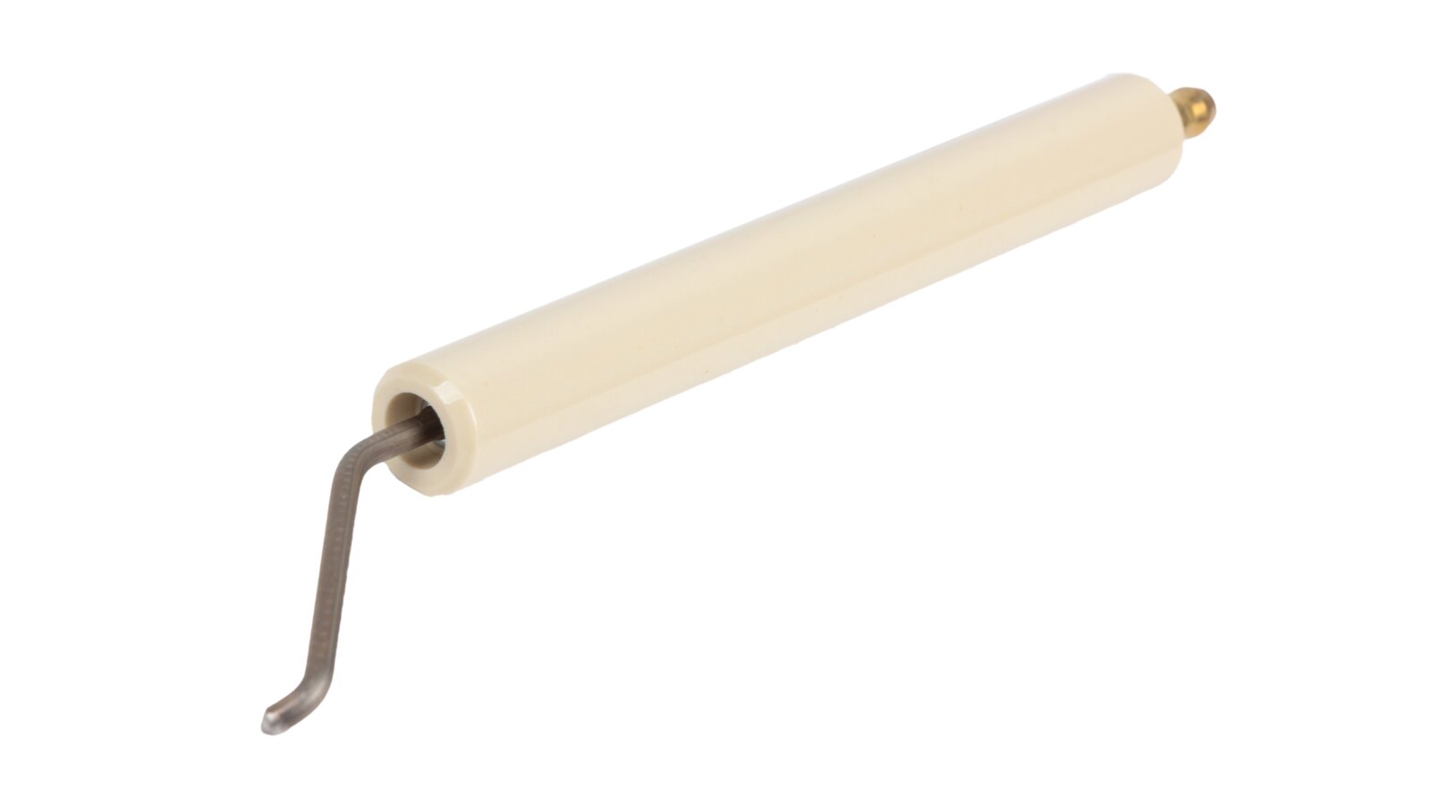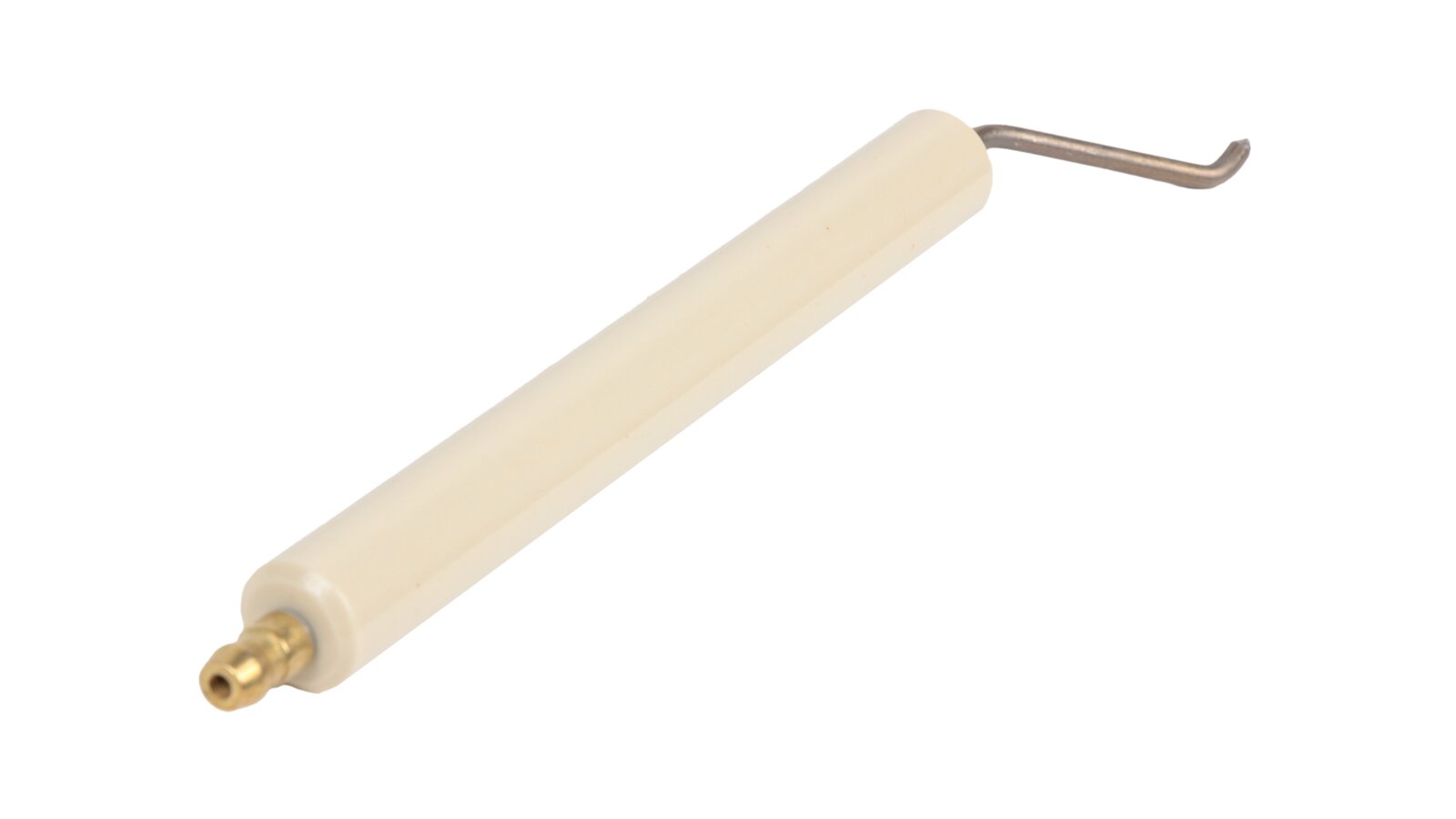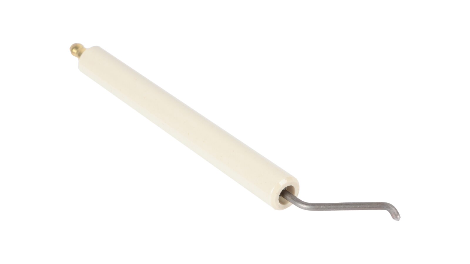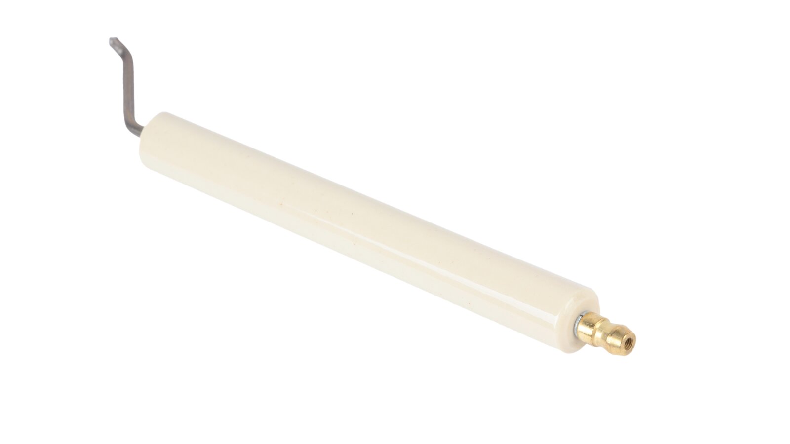 The ignition electrode 170 mm right article 11179410057 is used to assemble the burner ignition unit. When receiving high-voltage current from the ignition transformer, together with the left electrode article 11179410047, it forms a high-voltage electric arc that ignites the fuel when the burner is turned on. The electrode is equipped with fixed insulation Ø14x125 mm made of ceramics. Reliable contact with the ignition cable is achieved due to the plug connection (Ø6 mm).