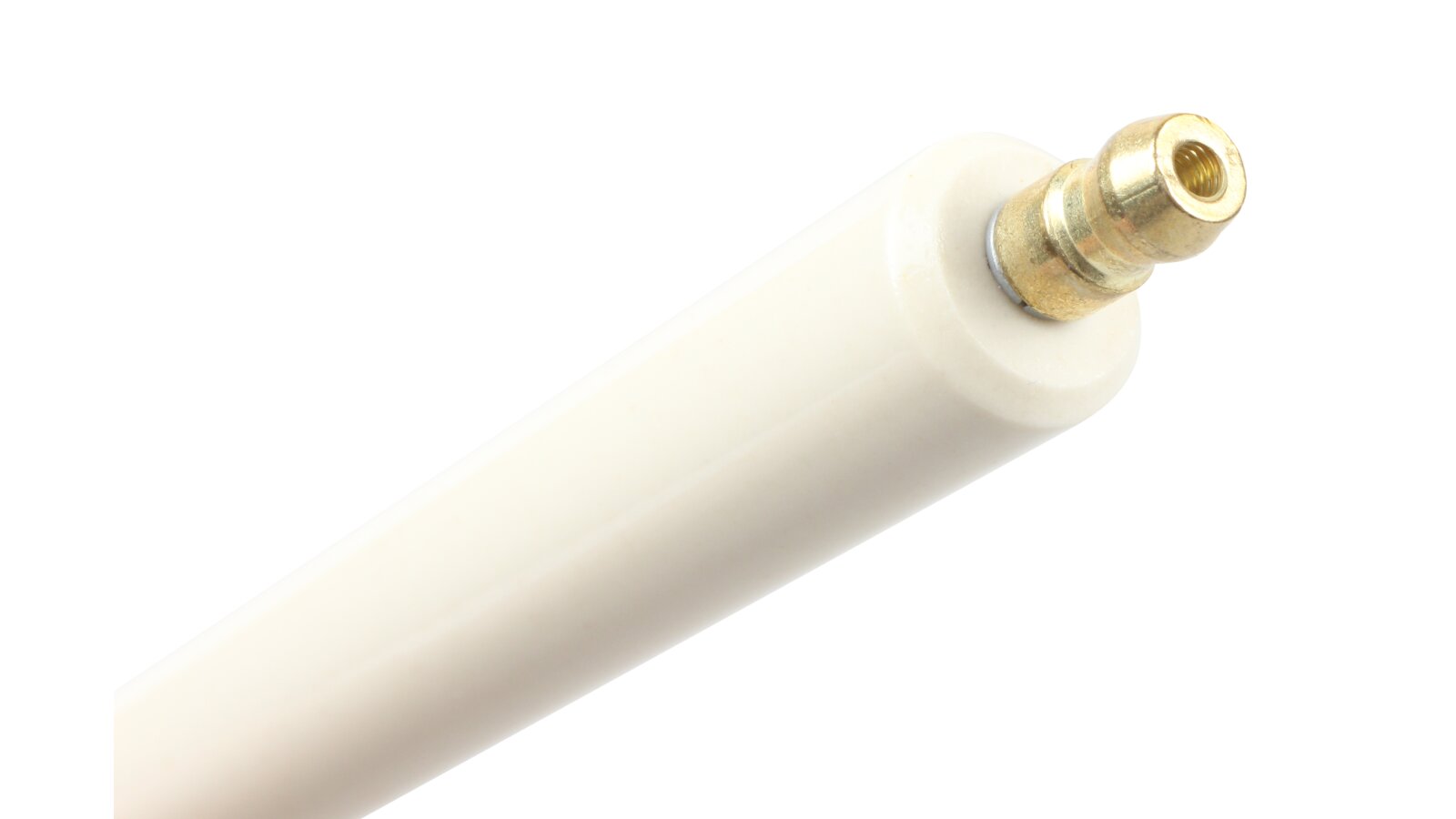 Ignition electrode 266 mm left article 11197410077 is necessary to obtain a high-voltage arc, due to which the fuel ignites when the burner is started. The electrical insulation of the conductive rod Ø14x200 mm is made of ceramics. Reliable contact with the ignition cable connecting the electrode to the current transformer is ensured by a plug connection Ø6 mm. The electrode is made in accordance with European quality and safety standards. It is used in tandem with the right electrode art. 11197410087.