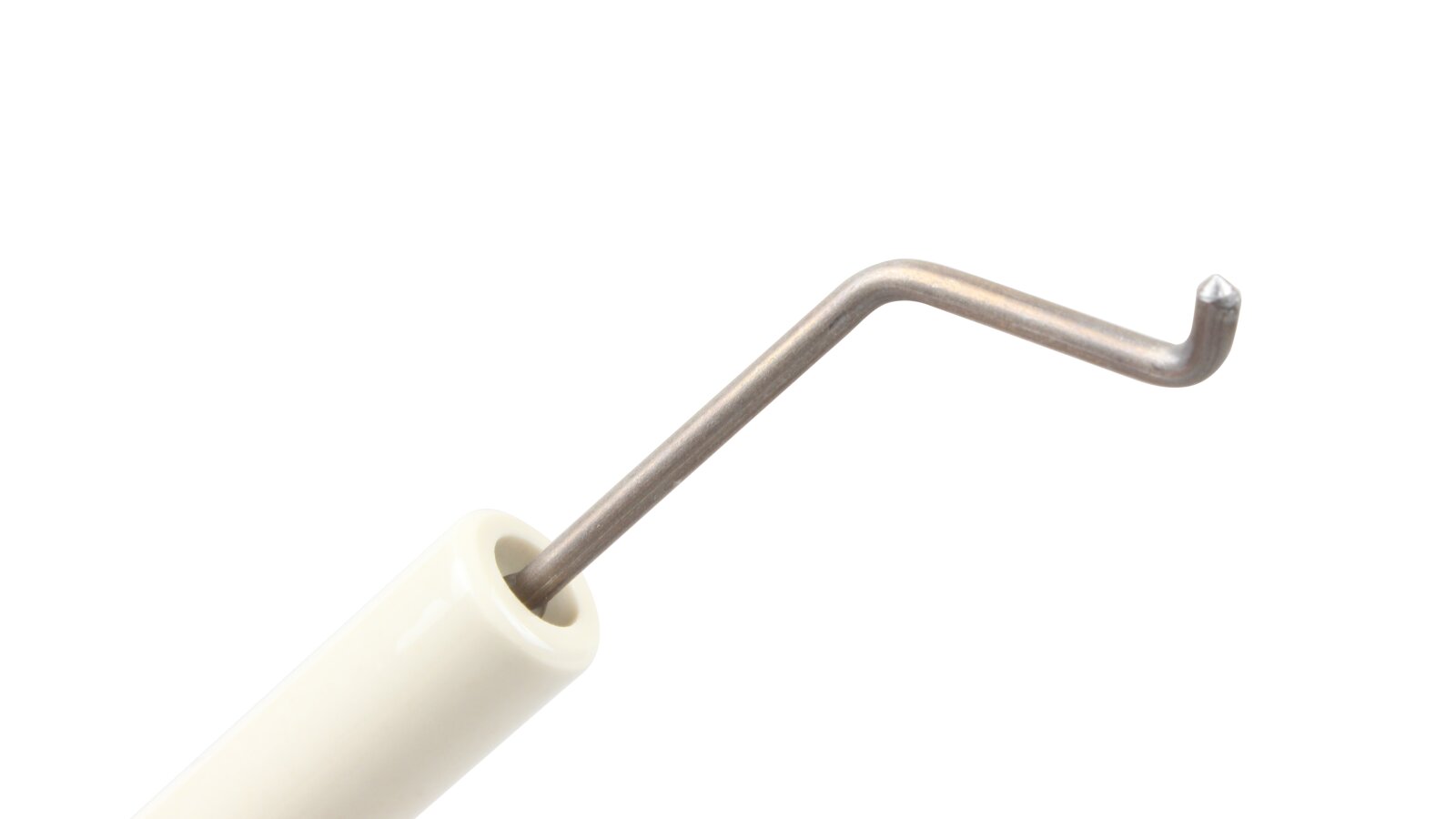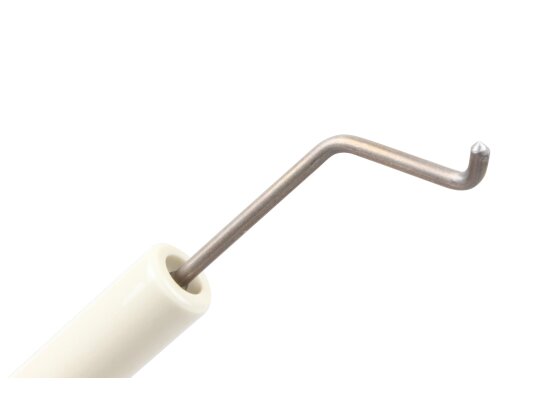 The ignition electrode 266 mm right article 11197410087 is necessary for assembling the burner ignition unit. When receiving high-voltage voltage from the current converter, together with the left electrode art. 11197410077 it creates a spark discharge that ignites the fuel when starting the burner. The high-voltage electrode is equipped with a fixed ceramic electrical insulation Ø14x200 mm and a plug Ø6 mm for reliable contact with the ignition cable.