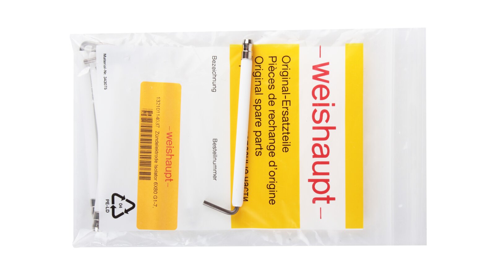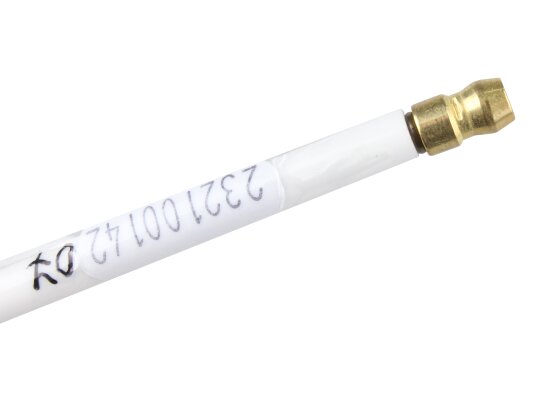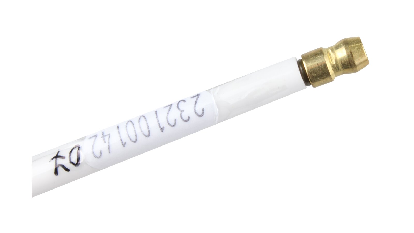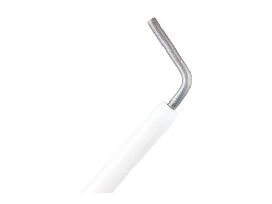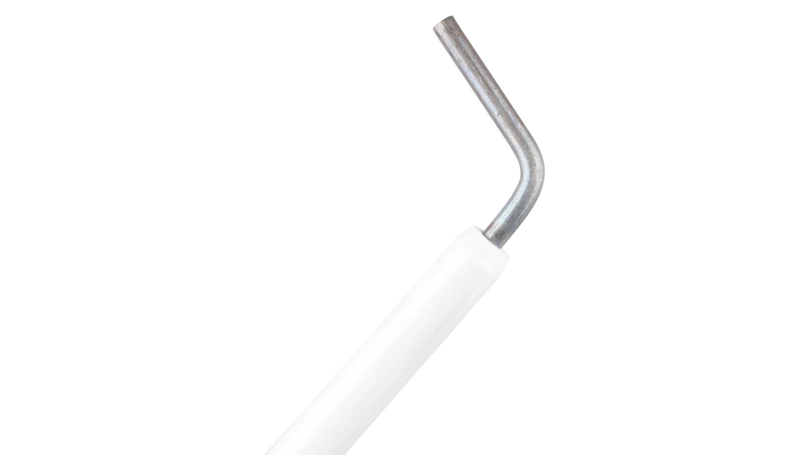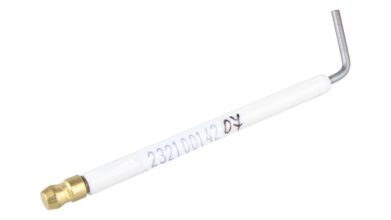 Ignition electrode 96 mm, article: 13210114037 is involved in the burner ignition process. Under the influence of high voltage, it creates an electric spark to ignite the fuel-air mixture when the burner is turned on. Connection to the ignition cable is carried out using a Ø6 mm or Ø4 mm plug. The conductive rod is insulated with a Ø5.8x80 mm ceramic shell.