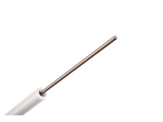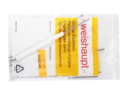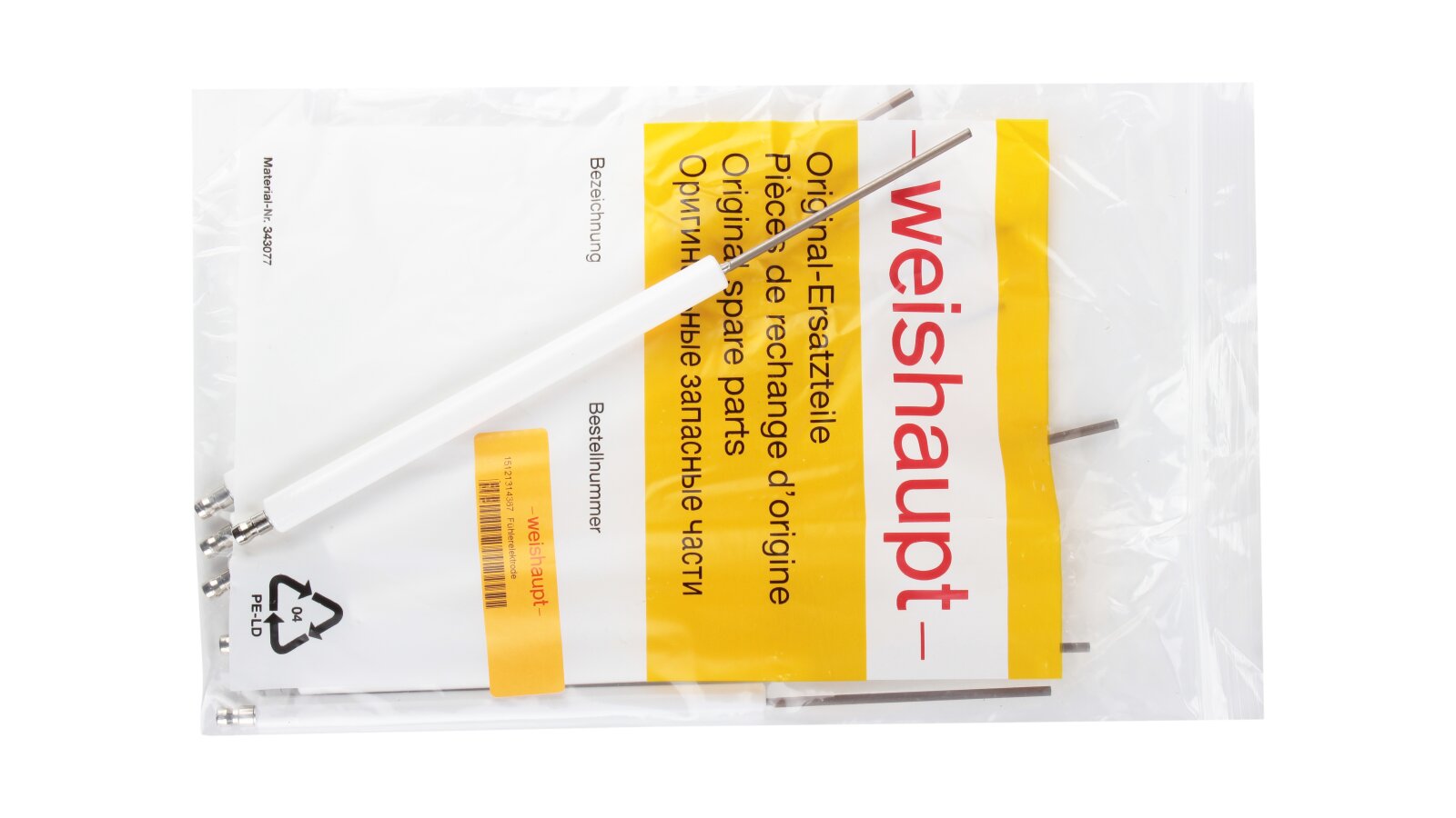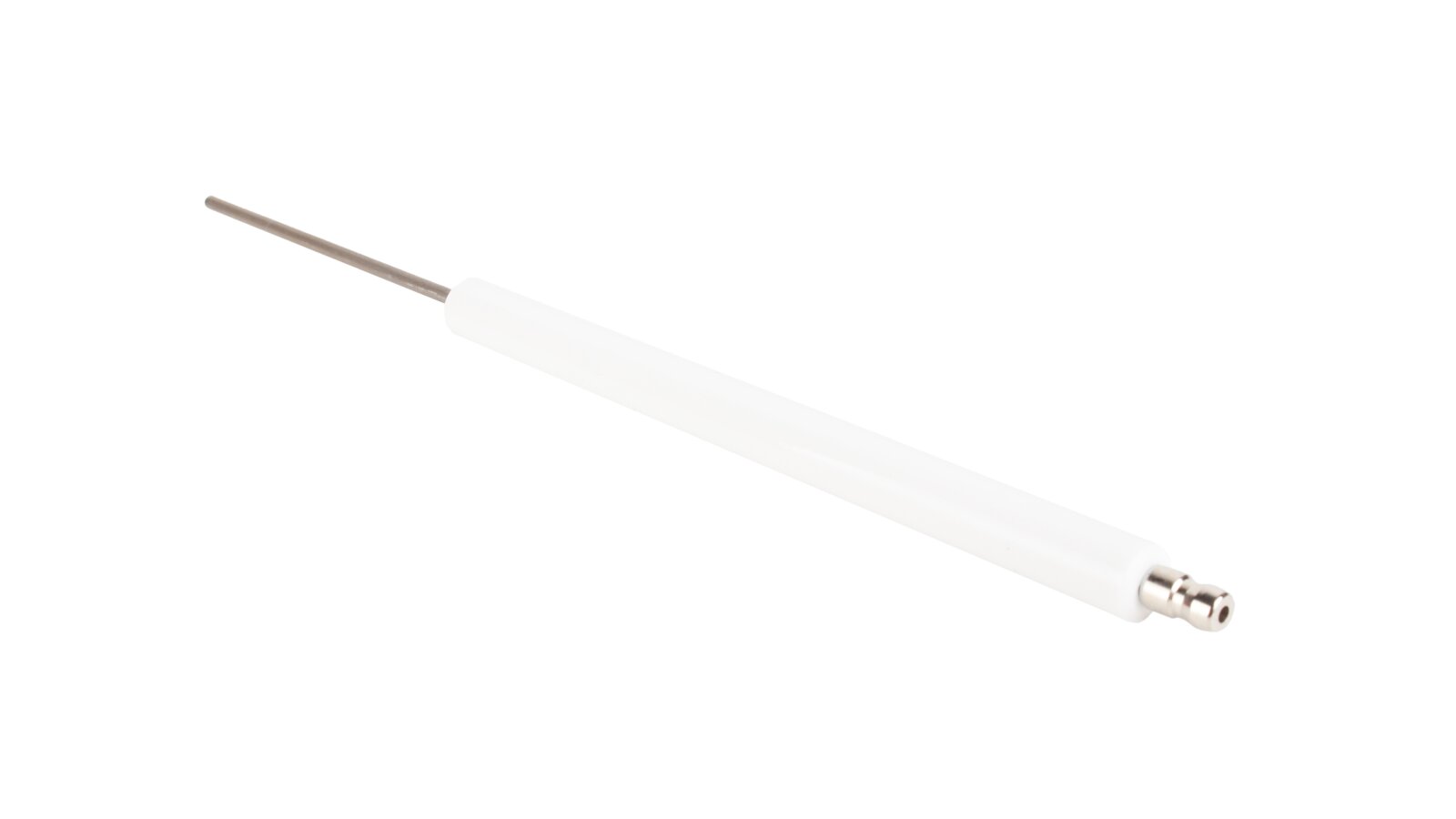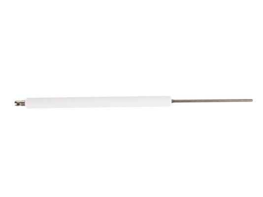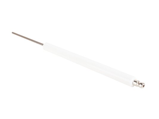 The Weishaupt 15121314387 ionization electrode controls the flame and, together with the automatic system, ensures safe operation of the gas burner. Transfers the ionization current to the control unit for immediate shutdown of the gas supply in the absence of a flame. Consists of a conductive rod in a ceramic insulating housing with a plug connector for connecting the ionization cable.