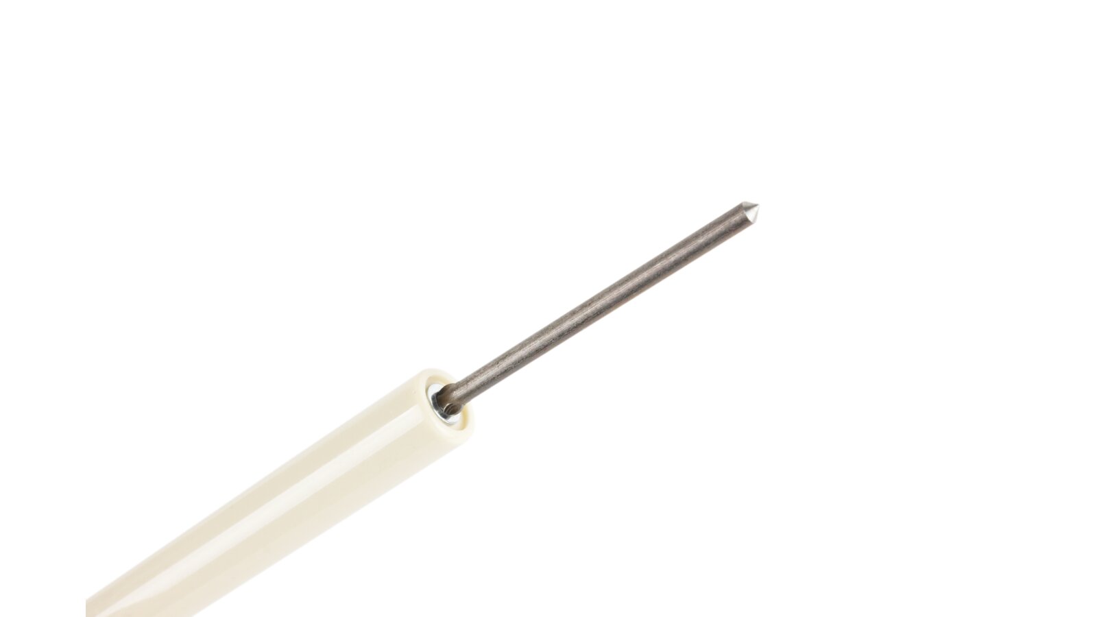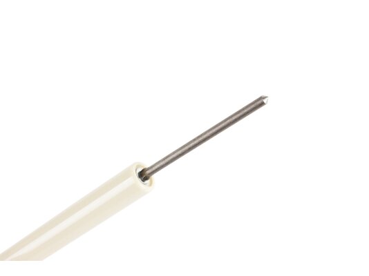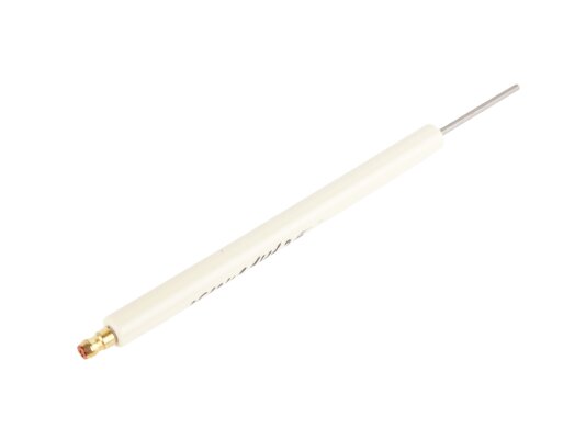 The burner safety system is completed with a 208.5 mm ionization electrode, article 15124314137. It controls the presence/absence of flame when the burner is operating. To transmit the ionization current to the burner automation, an ionization cable is connected to the electrode. A Ø6 mm plug provides reliable contact. The electrode consists of a conductive rod, fixed Ø11 x147 mm ceramic electrical insulation, and a plug.