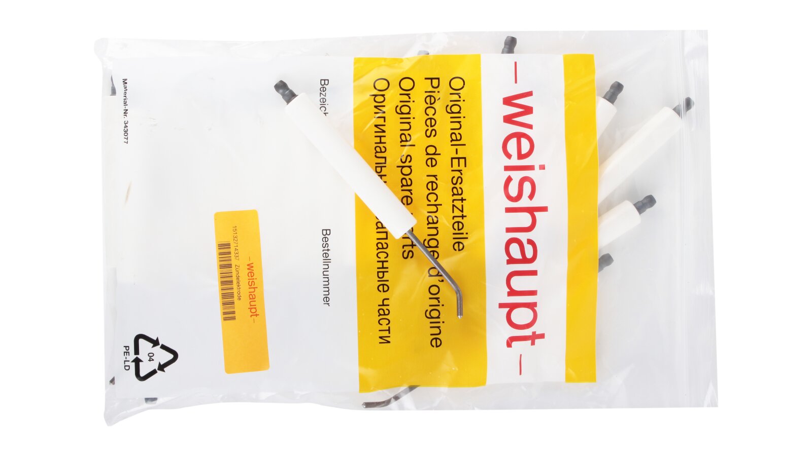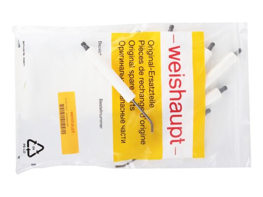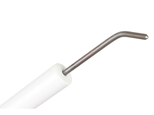 The Weishaupt ignition electrode 147 mm, left, art.: 15132714337 is used for spark ignition of the burner. Works together with a paired electrode and a high-voltage transformer. Manufactured in accordance with European safety and quality standards. Reliable contact with the high-voltage cable is achieved through a plug connection.
