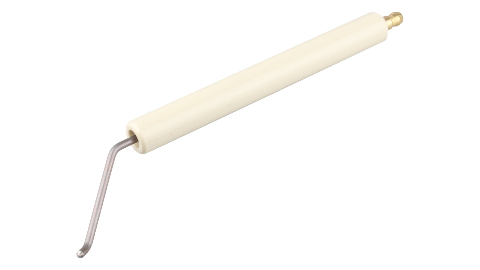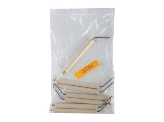 The ignition electrode 178 mm right article 21216310217 is used to complete the burner ignition unit. Upon receiving the required parameters from the current transformer, together with the left electrode art. 21216310207, it creates a spark discharge that ignites the fuel when starting the burner. The high-voltage electrode is equipped with fixed ceramic insulation Ø14x125 mm and a plug Ø6 mm for reliable contact with the ignition cable.