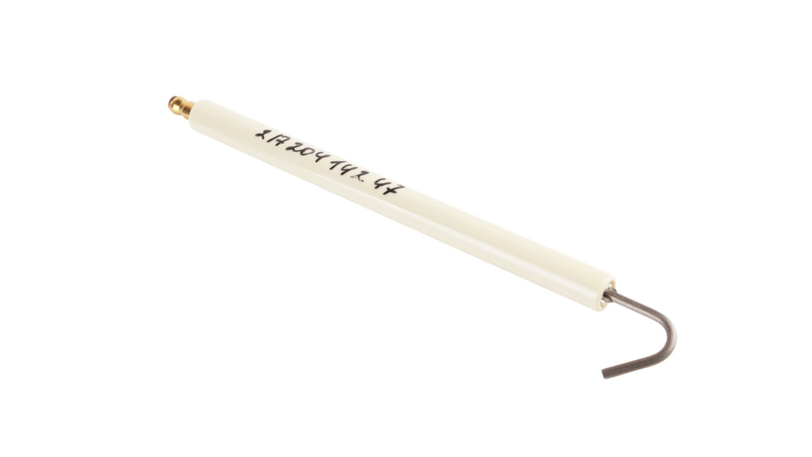 High voltage is supplied to the electrode via the ignition cable, which is necessary to obtain a spark discharge and ignite the fuel mixture. The electrode design consists of a metal rod, a protective fixed ceramic shell Ø11x145 mm and a plug Ø6 mm for connection to the conductive cable.