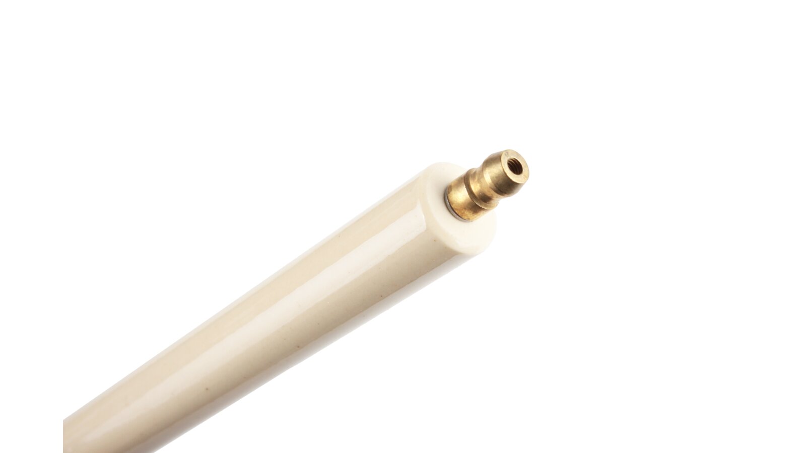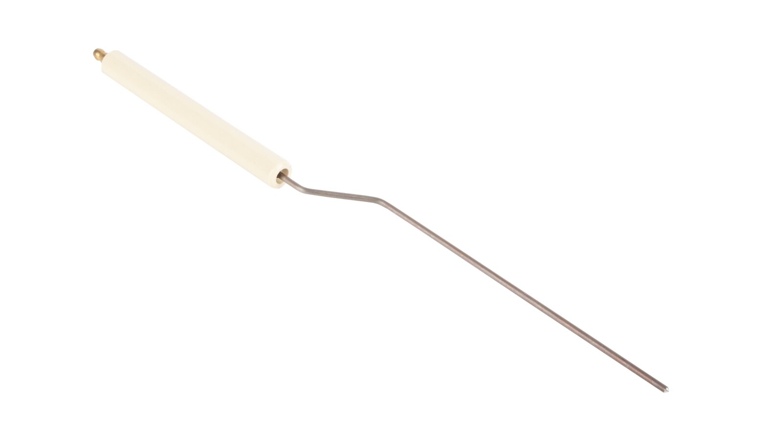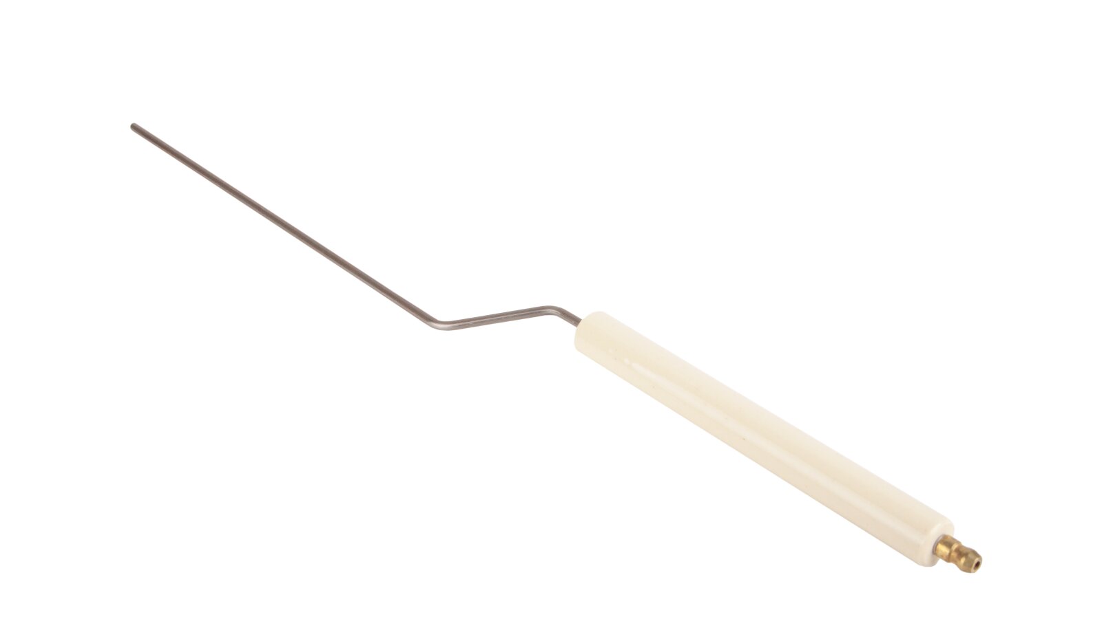 The ionization electrode 338 mm article 21730414267 is included in the flame combustion control unit when the burner is on, together with the automation prevents the risk of emergency situations when the flame goes out. The function of the ionization sensor is continuous monitoring of the presence / absence of flame, transmitting the ionization current to the automation for fuel supply control. The electrode design consists of a conductive rod with fixed protective insulation Ø14x125 mm made of ceramics. A Ø6 mm plug is provided for connecting the ionization cable and reliable contact.