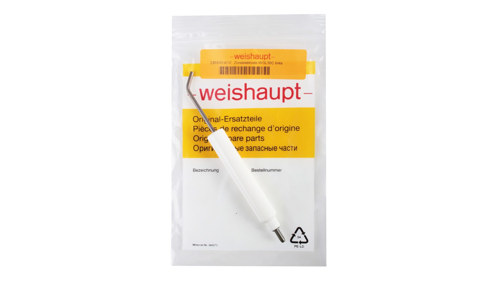 Ignition electrode Weishaupt, left, 147.5 mm, 23531014137