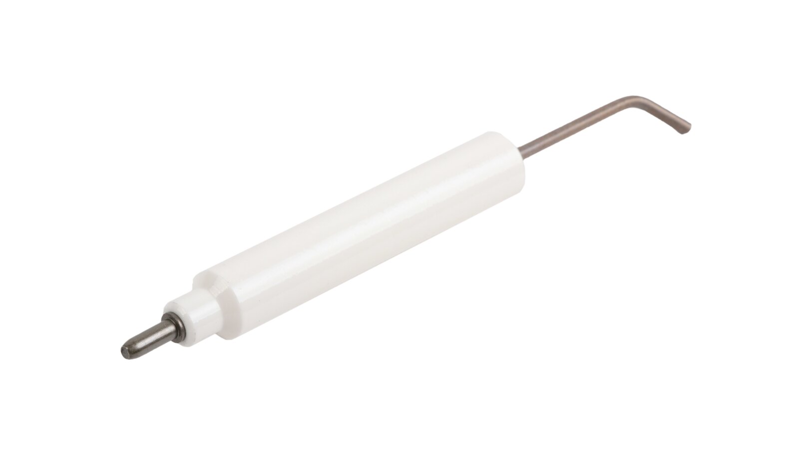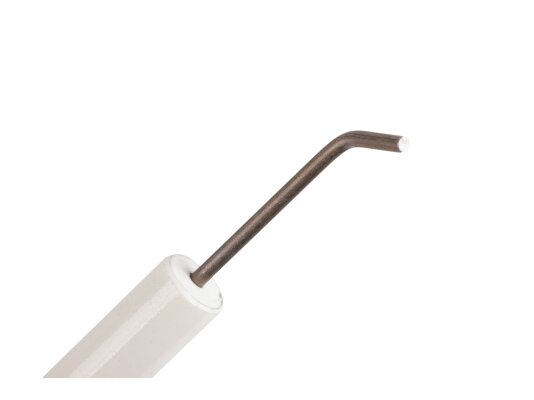 Ignition electrode 147.5 mm, left, article: 23531014137 together with the right electrode, article. 23531014127 creates a high-voltage arc, due to which the fuel ignites when the burner is started. It is characterized by reliable performance, manufactured in accordance with European quality standards. The metal rod, through which the high-voltage current passes, is placed in fixed insulation Ø14x85 mm made of ceramics. Reliable contact with the ignition cable is achieved using a plug connection Ø4 mm.