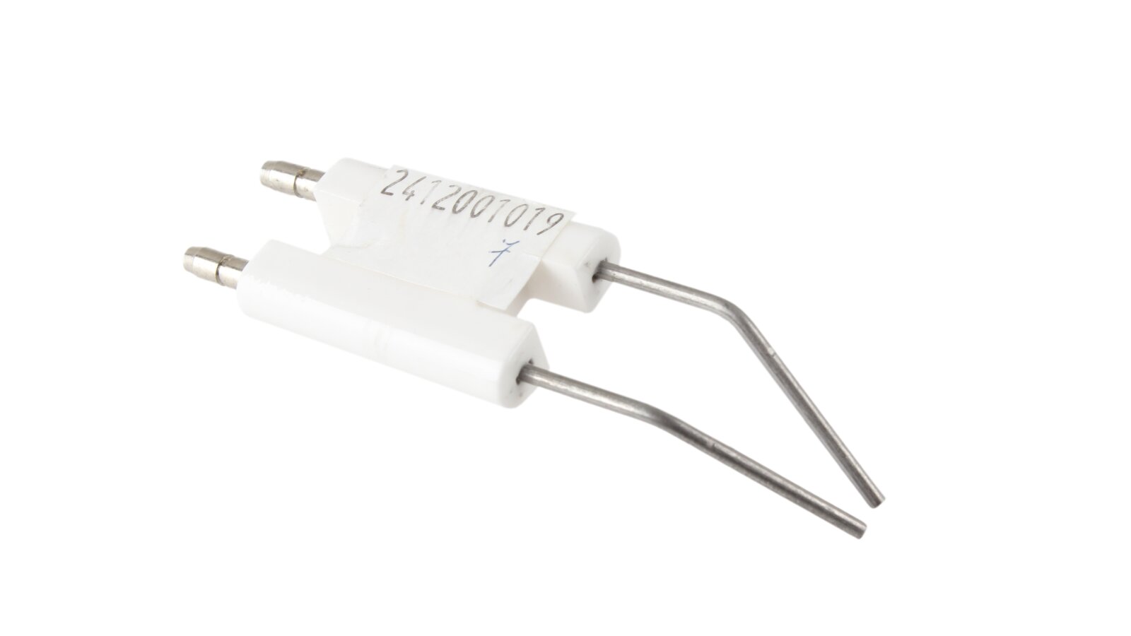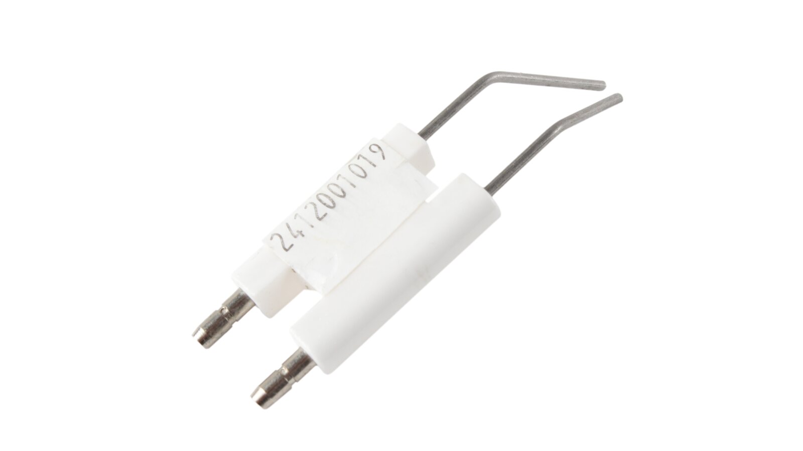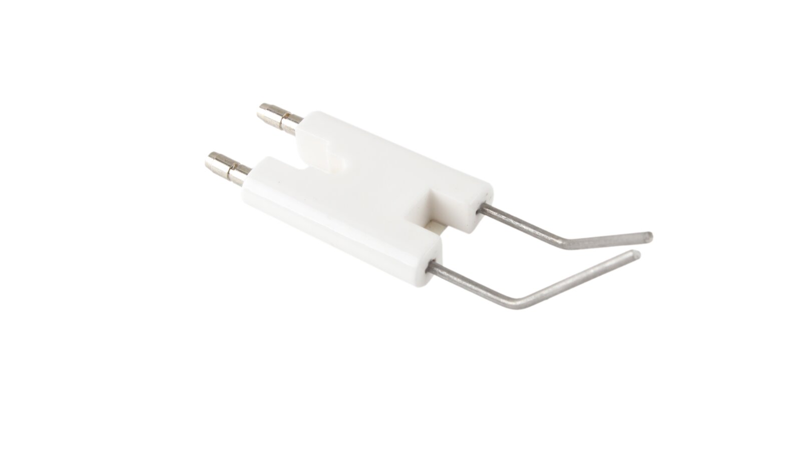 The ignition electrode block 86.5 mm article 24120010197 is used to ignite the burner. When high-voltage current is supplied, an electric spark discharge is formed between the electrodes, igniting the fuel mixture. The block has a single ceramic electrical insulation of the conductive rods (size 38x25x8 mm). Plug connections Ø4 mm are provided for connecting ignition cables and reliable contact.