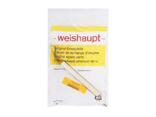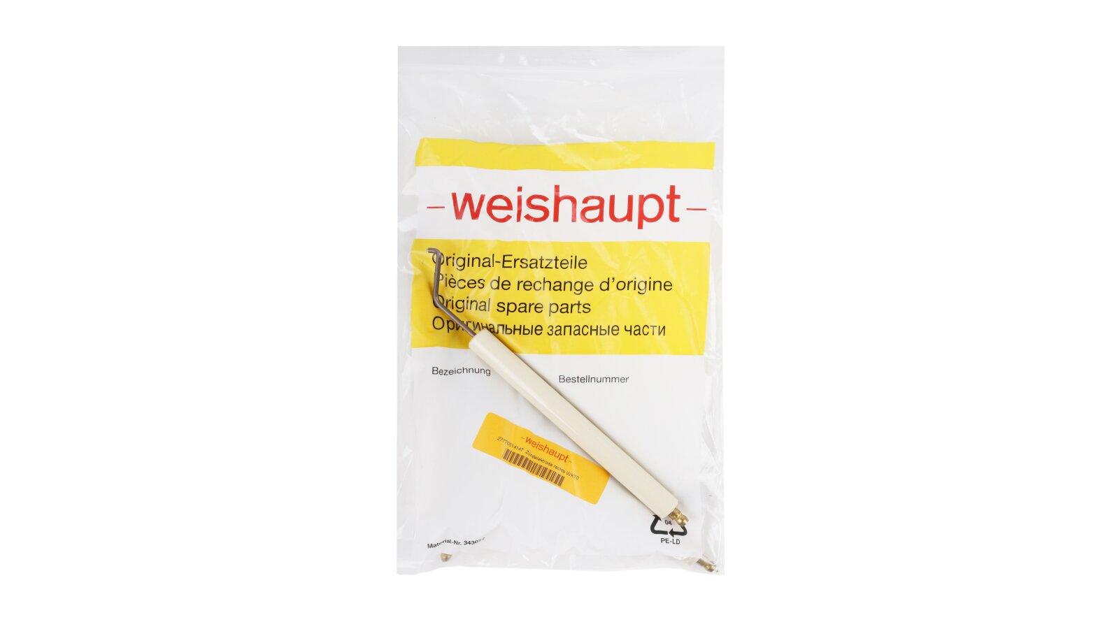 The Weishaupt ignition electrode, art. 27770514147, is part of the automatic ignition system of the industrial burner. It is connected to the high-voltage transformer via a high-voltage cable. Instantly creates an ignition spark that ignites the fuel when high-voltage current is supplied. Conforms to European quality and electrical safety standards.