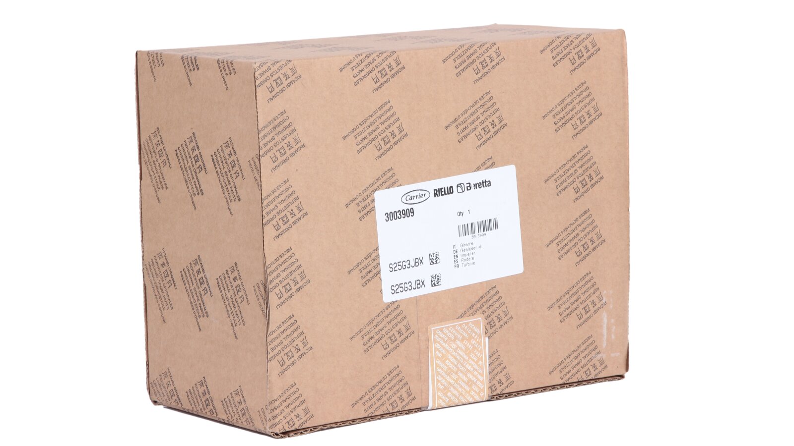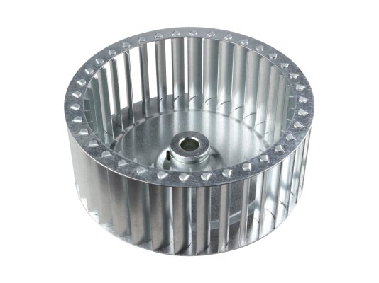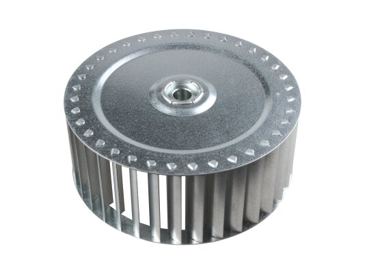 Riello fan impeller Ø160 x 62.5 mm, Part Number: 3003909 forces air into the combustion chamber with a swirling flow for uniform distribution of air masses throughout the volume and obtaining a homogeneous mixture with fuel. The impeller blades have a special shape, which increases the efficiency of boosting.