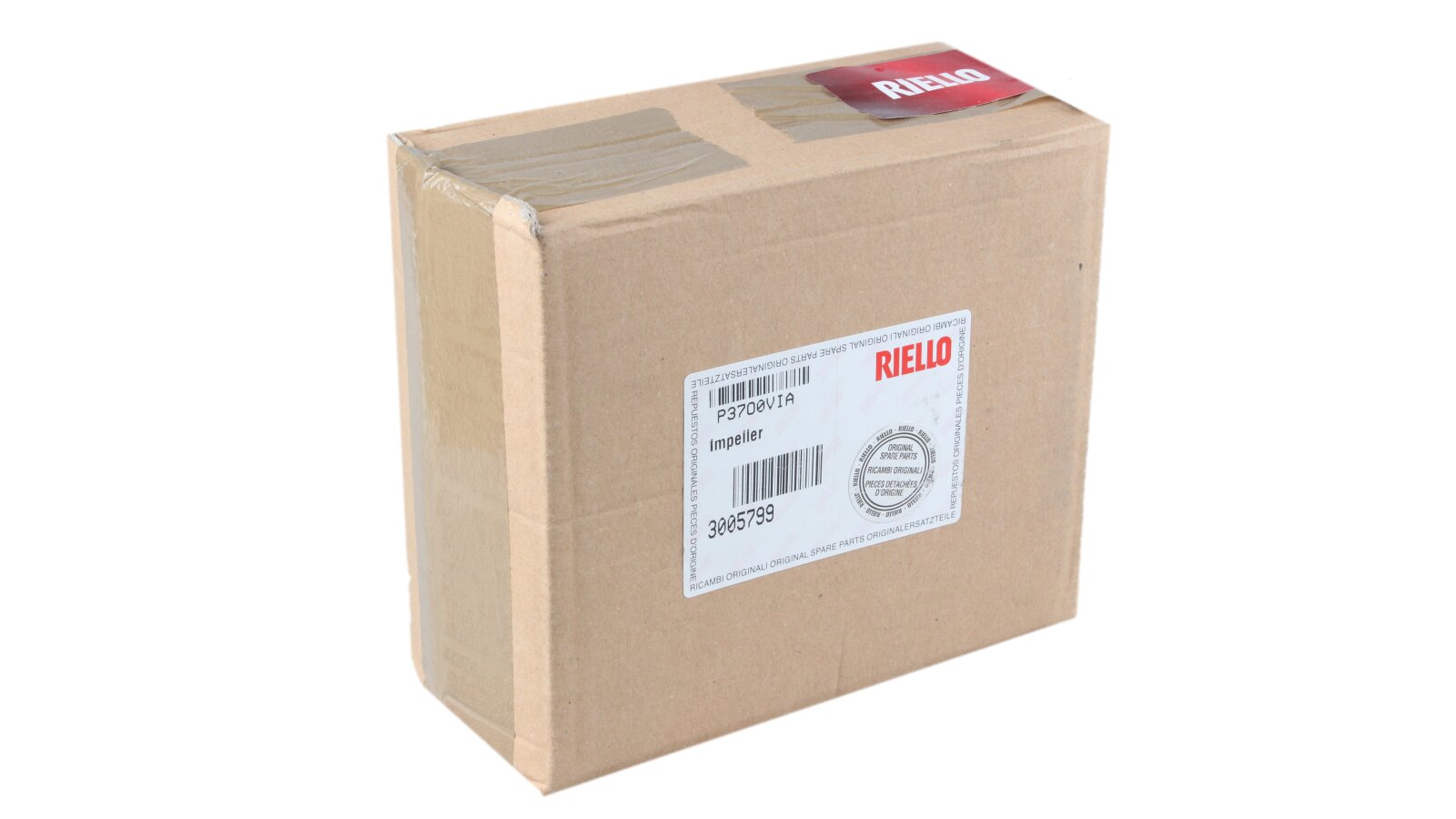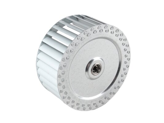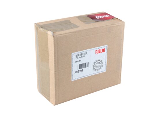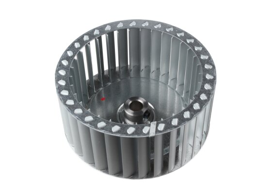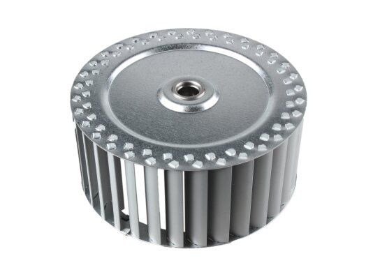 The Riello fan impeller Ø140 x 62 mm, Part Number: 3005799, is equipped with 33 blades. The direction of rotation is clockwise. Durable material was used in the manufacture of the wheel.