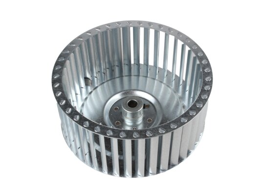 The fan impeller Ø173 x 82 mm, Part Number: 3008494 has 36 blades in its design. Rotation is counterclockwise. The impeller material is wear-resistant. The original part is designed to equip Riello fan burners that burn gas or liquid fuel.