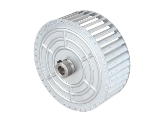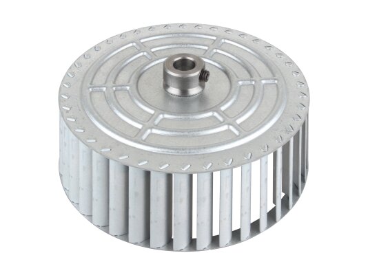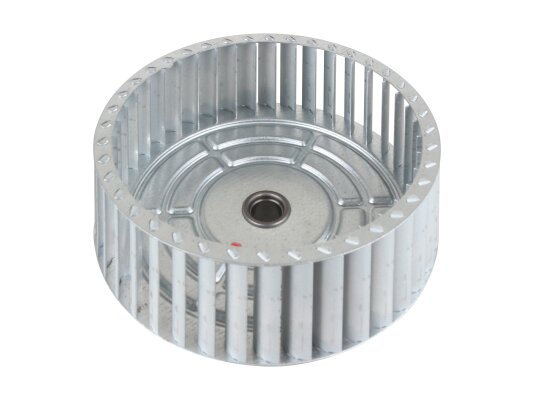 The fan impeller Ø140 x 51.8 mm, Part Number: 3008952 has 40 blades in its design. The direction of rotation is counterclockwise. The hub is external, the diameter is 12.7 mm. The wheel is made of wear-resistant material. It is used for Riello burners.