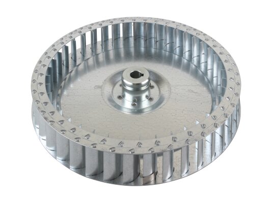 The Riello fan impeller Ø280 x 50 mm Part Number: 3013768 has 42 blades in its design. Rotation is clockwise. The impeller material is wear-resistant. The original part is used in Riello fan burners.