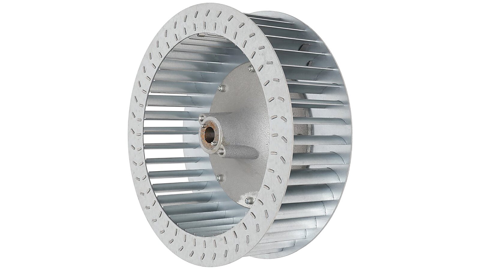 The fan wheel effectively forces air with a swirling turbulent flow, which promotes uniform distribution of air masses in the combustion chamber and the production of a homogeneous fuel-air mixture. The rigid bushing ensures a secure fit of the impeller on the fan motor shaft.