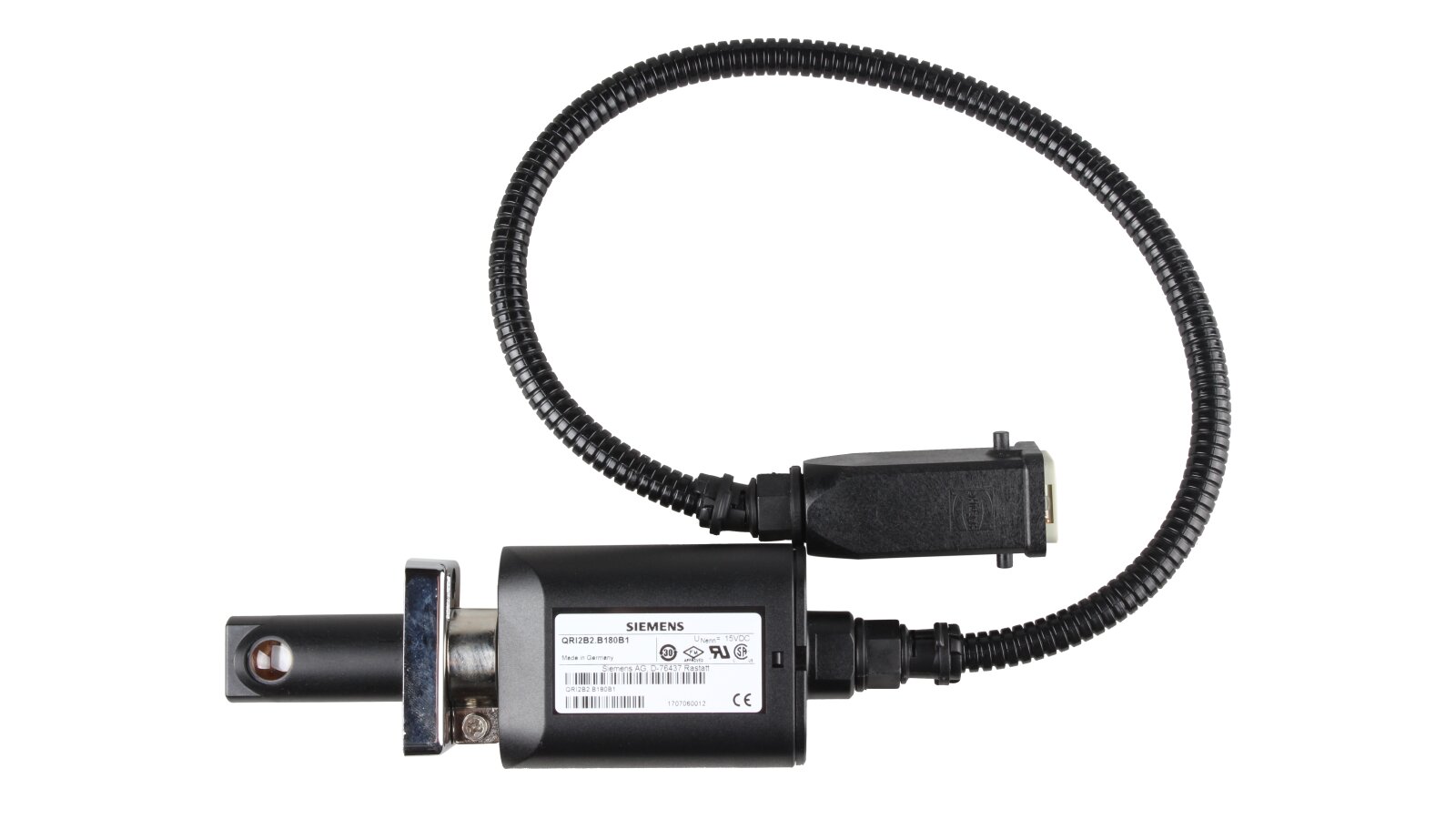 The Siemen QRI2B2.B180B1 500 flame sensor, art: 20006151, reacts to a flame emitting infrared light. Thanks to the built-in flame signal amplifier, it is highly sensitive. It is used in conjunction with burner automation operating on gas, liquid and other fuels. Suitable for systems with continuous and intermittent mode.
