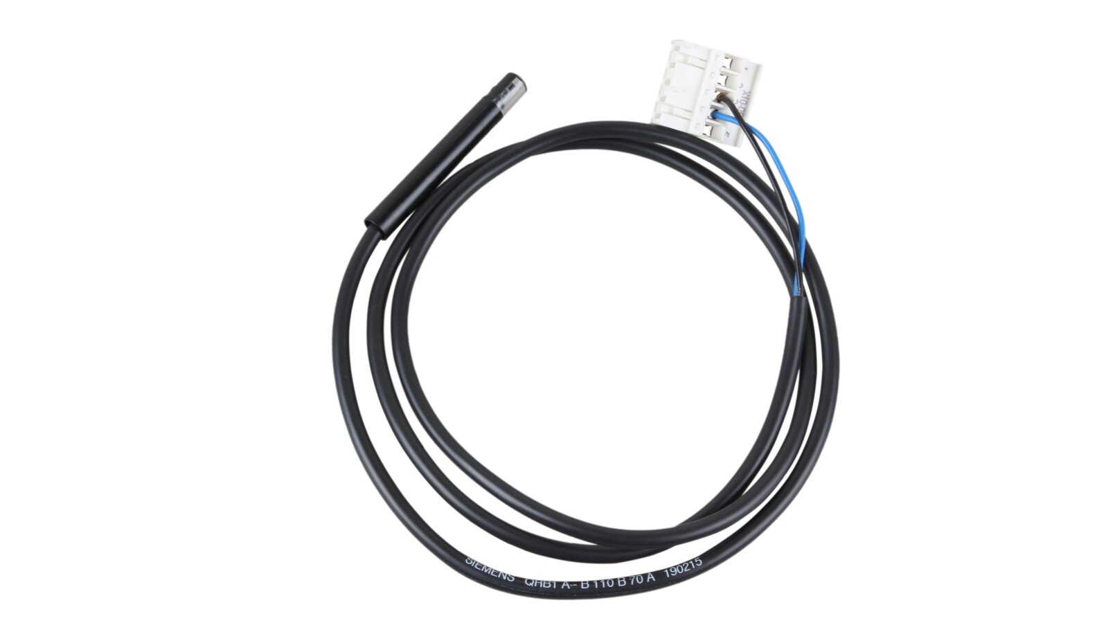 The flame sensor has a compact design. The housing protects the photoresistive element from external influences. A two-wire cable 800 mm long with an insulating PVC sheath is connected to it. The plug connection allows you to quickly connect the sensor to the combustion manager.