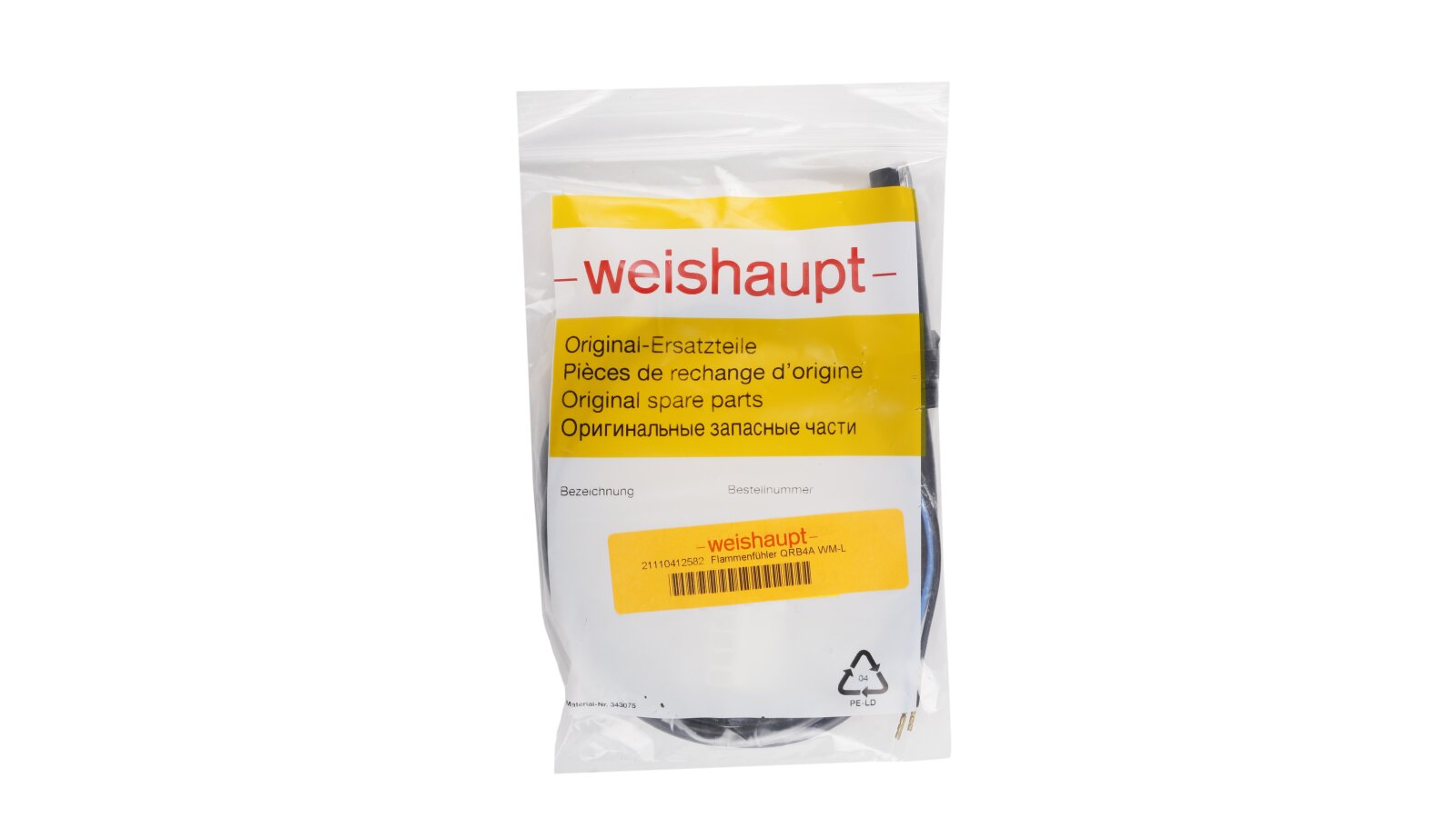 Flame sensor Weishaupt QRB4A-B110B70, art.: 21110412582 – compact device for monitoring yellow flame in the visible light spectrum. It is used to equip Weishaupt industrial liquid fuel burners. Compatible with automatic burners operating in intermittent mode. Lateral and direct measurements expand the possibilities of installation and detection. The sensor requires standard measures of protection against light interference.