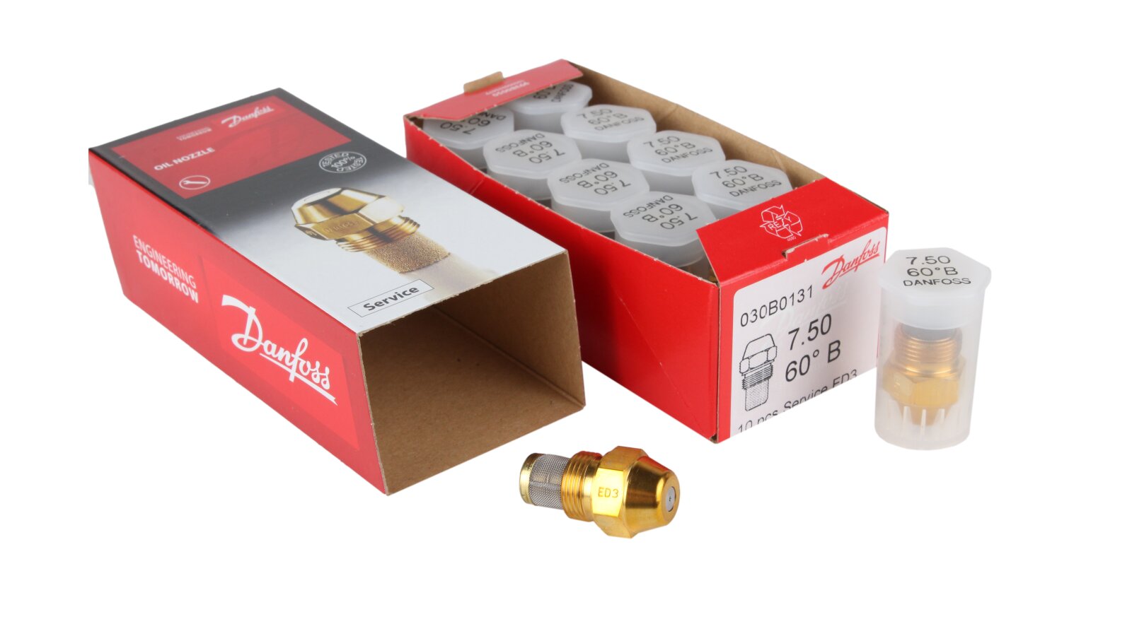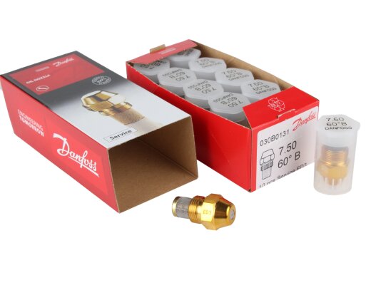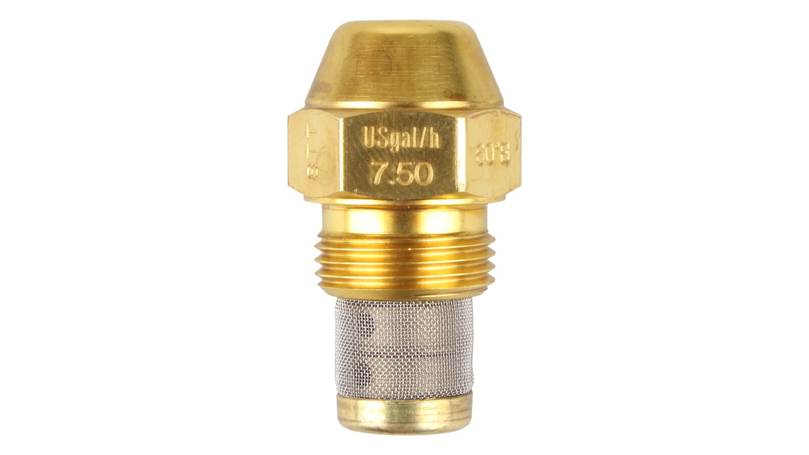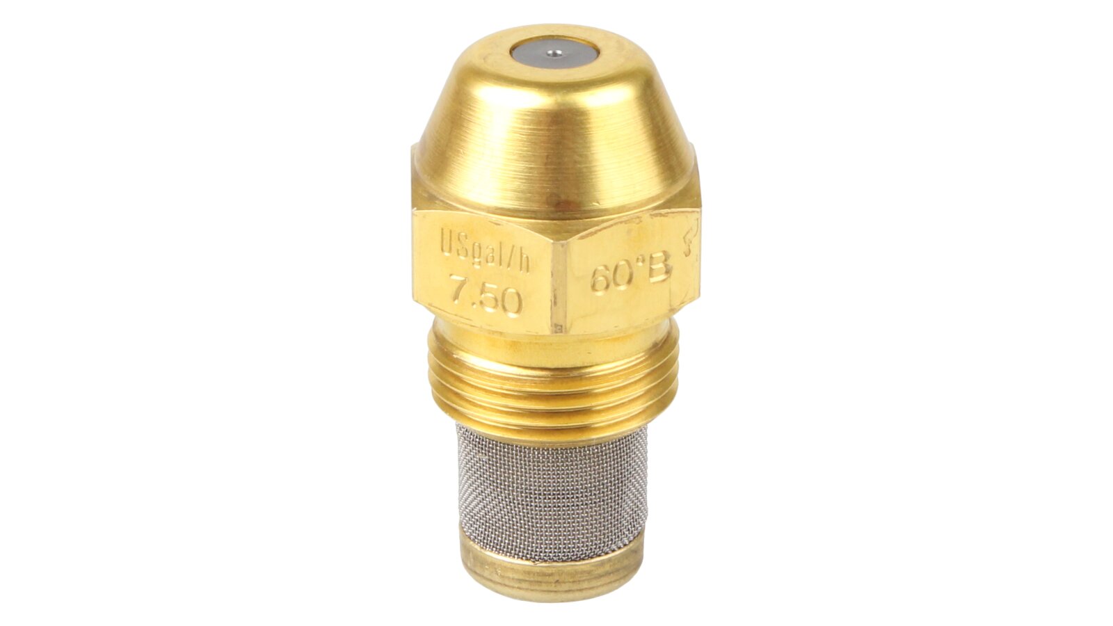 The Danfoss 7.50 / 60ºB OD nozzle art. 030B0131 with a capacity of 7.5 gph is designed to equip domestic and industrial burners. It is made in a standard version with a conical head. The nozzle body contains a swirl, spray, mesh filter, and seal. The filter is made of monel metal, holds impurities of 140 µm, protecting the nozzle from clogging. Spray type B (semi-solid). A 16 mm key is used for installation. Connection parameters 9/16"-24UNEF-2A. We offer to buy a Danfoss OD nozzle and other spare parts for equipping burners.
