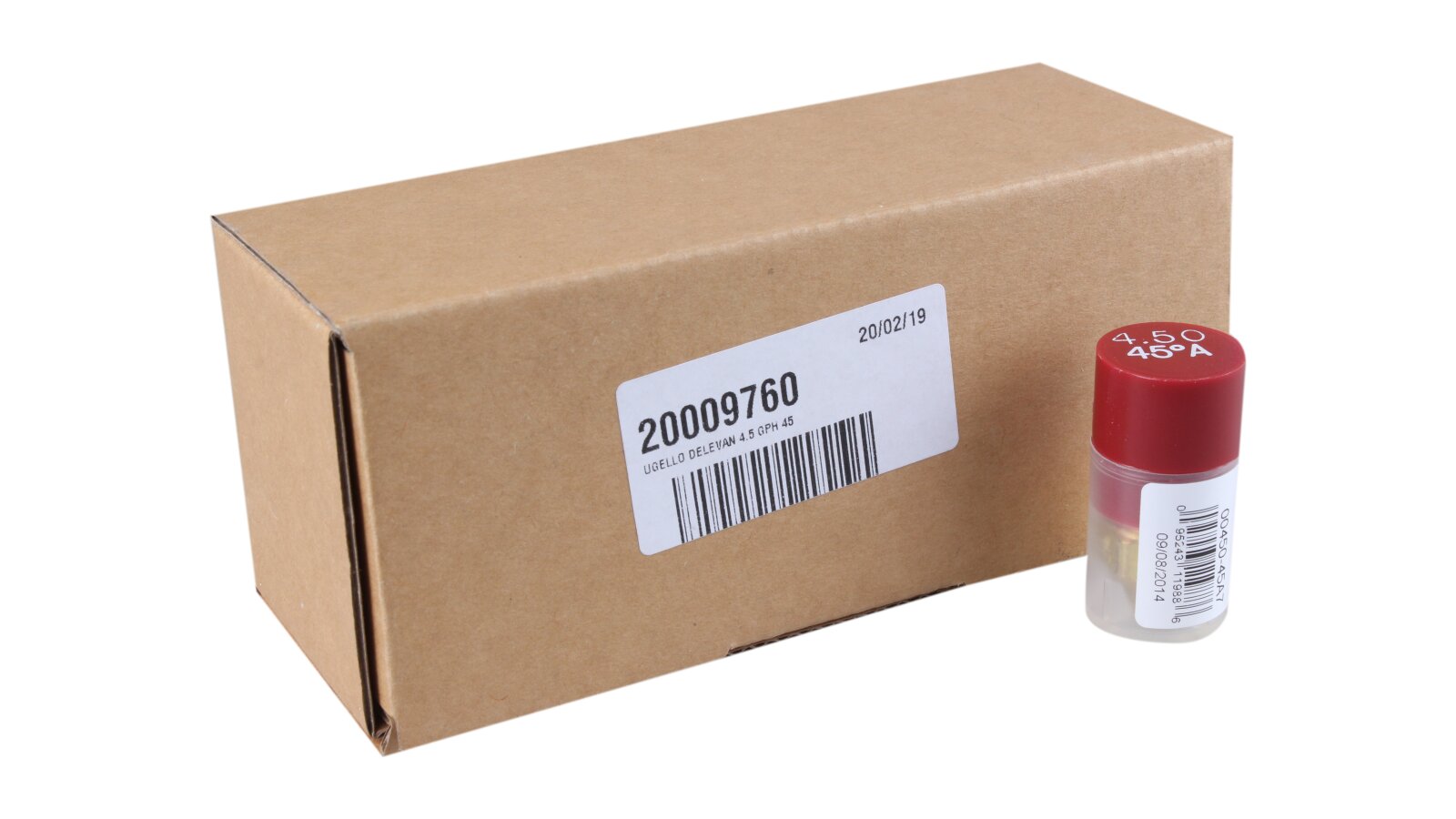 The Riello nozzle has individual protection against clogging and damage during transportation. It is equipped with a plastic tube with a lid.