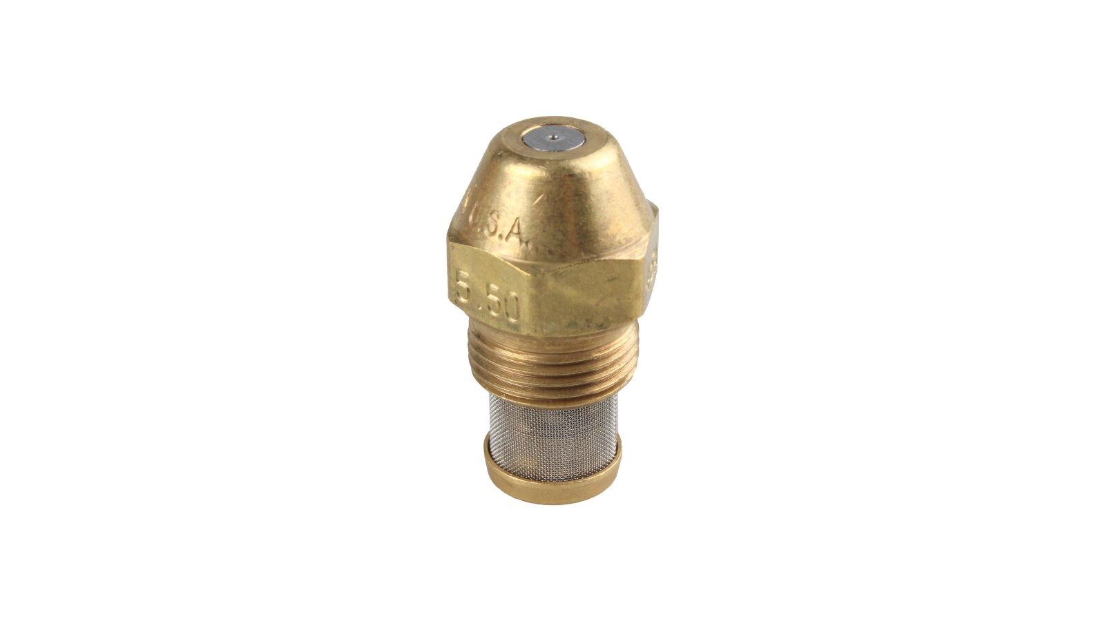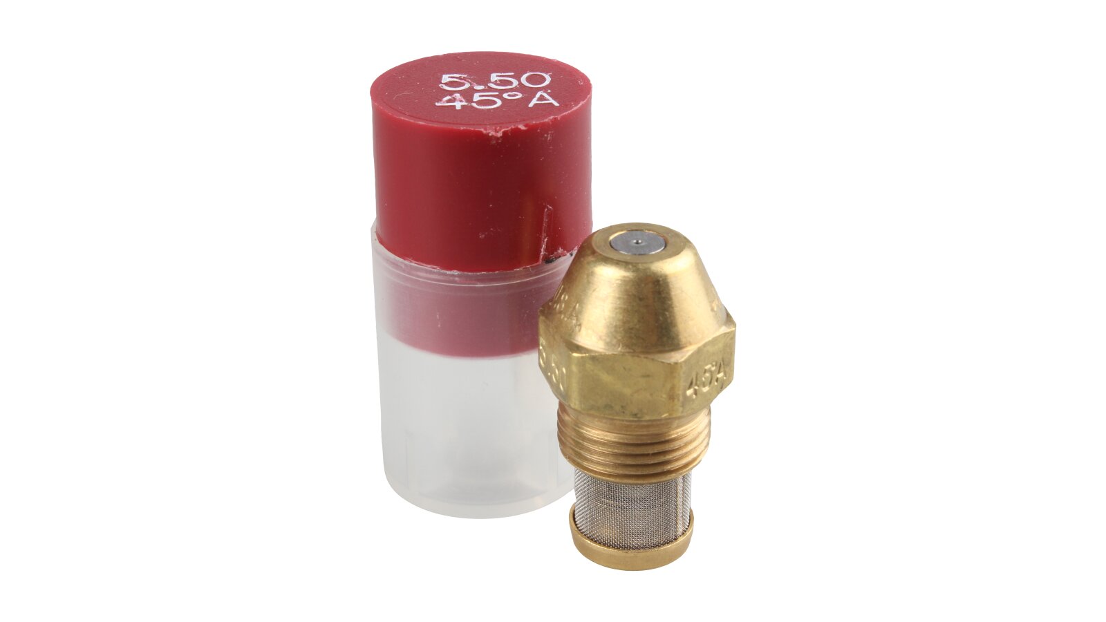 The Riello 5.50/45° A nozzle creates a hollow cone spray of 45°. This jet angle is more suitable for burning fuel in narrow and long combustion chambers. Viscous fuels are supplied with a narrower cone, which can be corrected by increasing the pressure. The nozzle characteristics allow it to be used for domestic and industrial combustion systems with a flow rate of up to 5.5 gph.