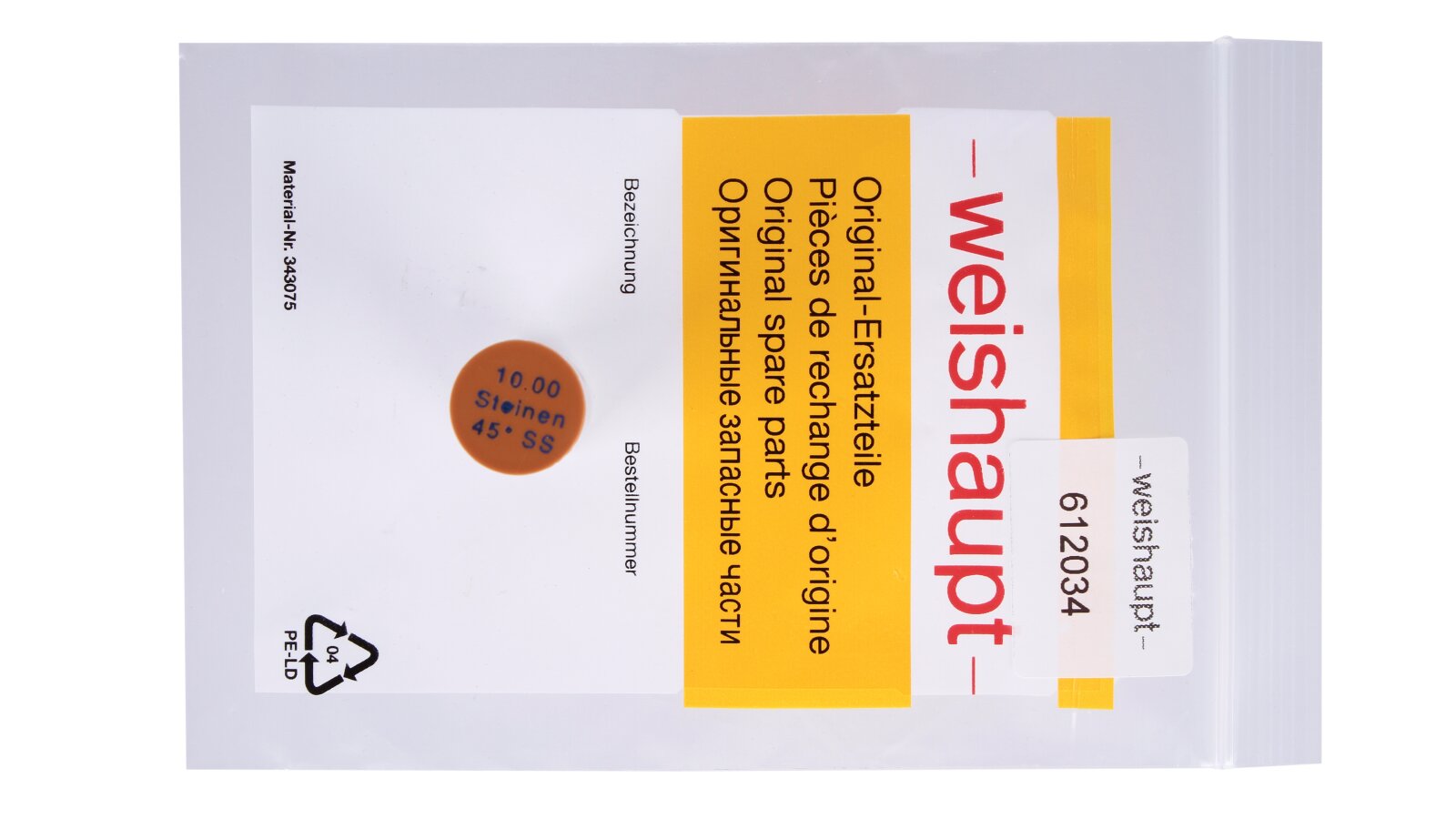 The Weishaupt 10.00/45° SS nozzle, art.: 612034 prepares liquid fuel for easy ignition, efficient, clean and quiet combustion. Thanks to aerosol spraying, it creates conditions for homogeneous mixing of the components of the fuel-air mixture. It is part of the line of standard nozzles with a semi-solid jet pattern. Fuel droplets are concentrated on the outer side of the cone.
