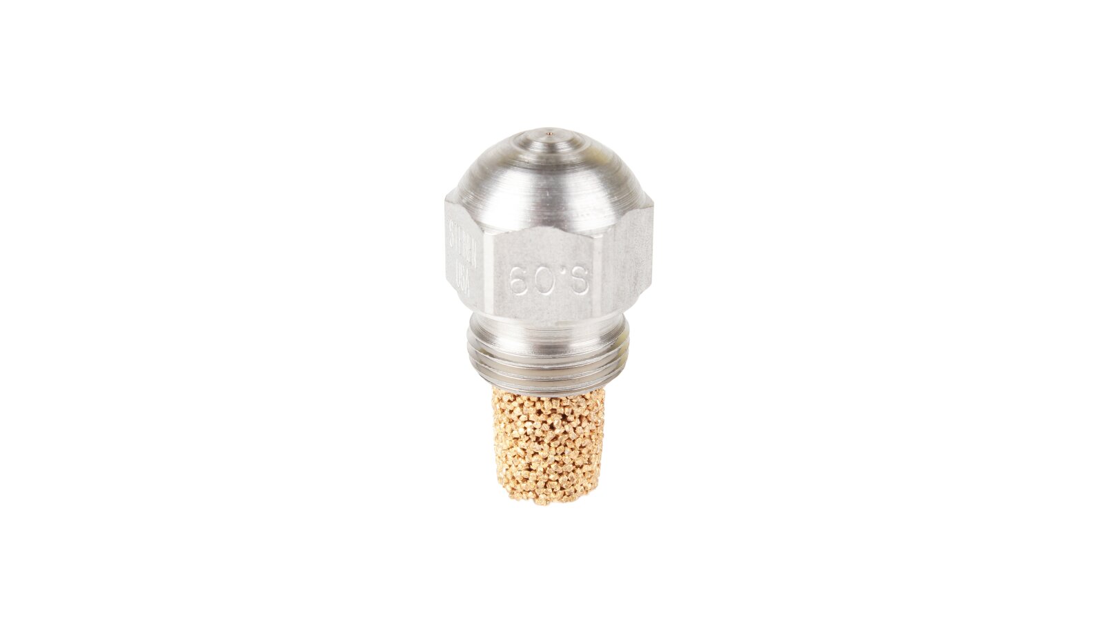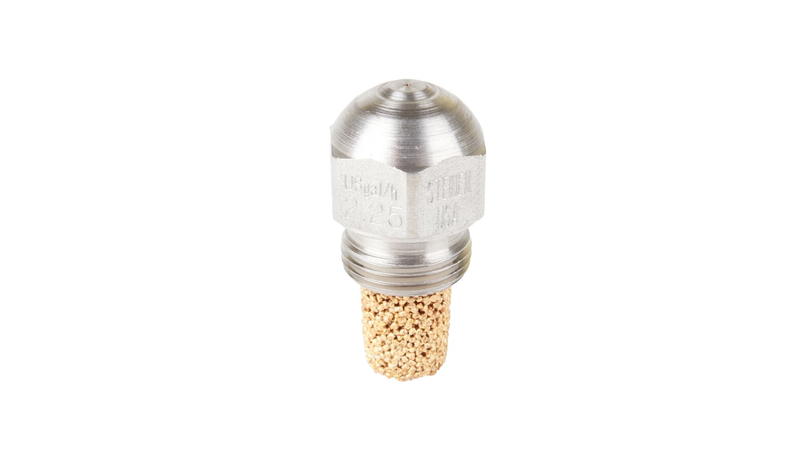 The nozzle is manufactured using modern technologies. It atomizes fuel with a solid cone at 60°. Throughput: 2.25 gal/h.