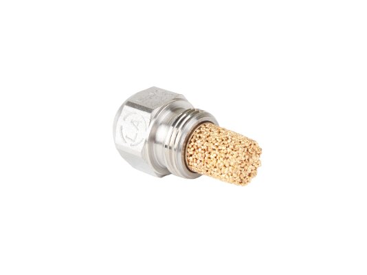 The design is made of stainless steel. The main elements: a housing with a round head and thread for installation at the operating location, a filter with sintered bronze balls. Due to the granulated filler with an increased cleaning area, clogging of the channels and holes of the atomizer with solid particles is prevented, the spray characteristics are maintained throughout the entire service life (throughput, angle and spray pattern).