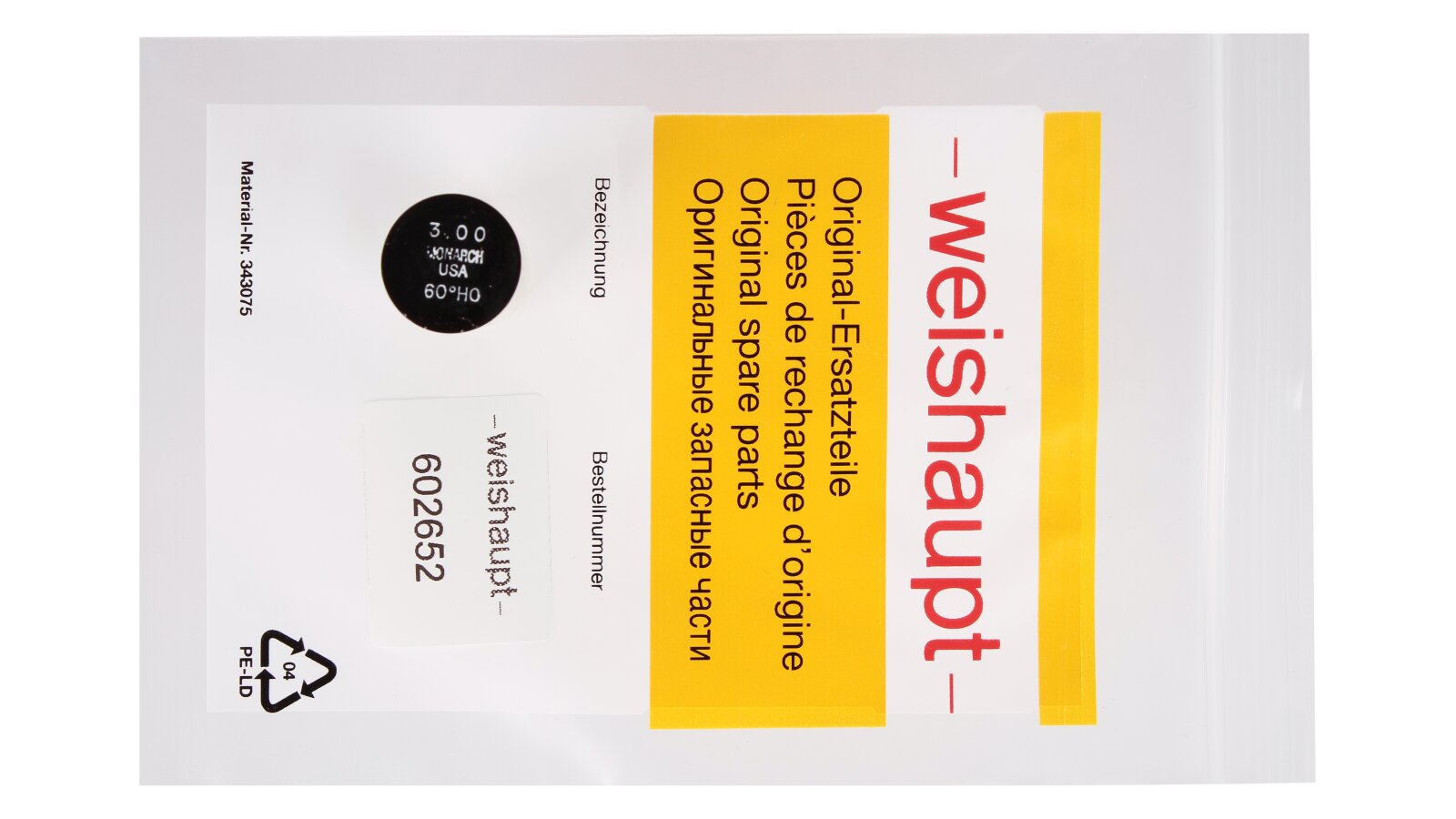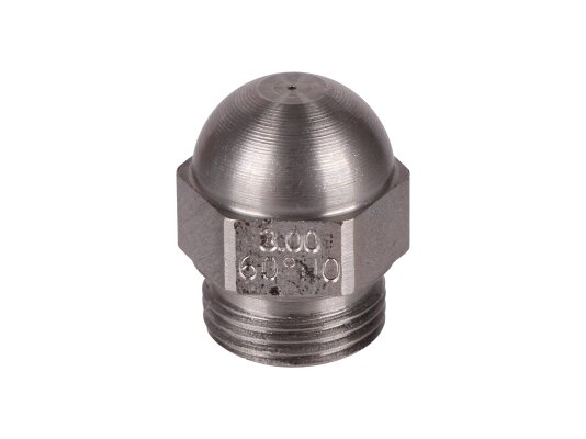 The Weishaupt 3.00/60° HO nozzle features a reinforced design developed for atomizing high-viscosity fuel. Provides uniform fuel injection in a hollow stream for mixing with air before combustion. Used in high-pressure fuel oil and diesel burners.