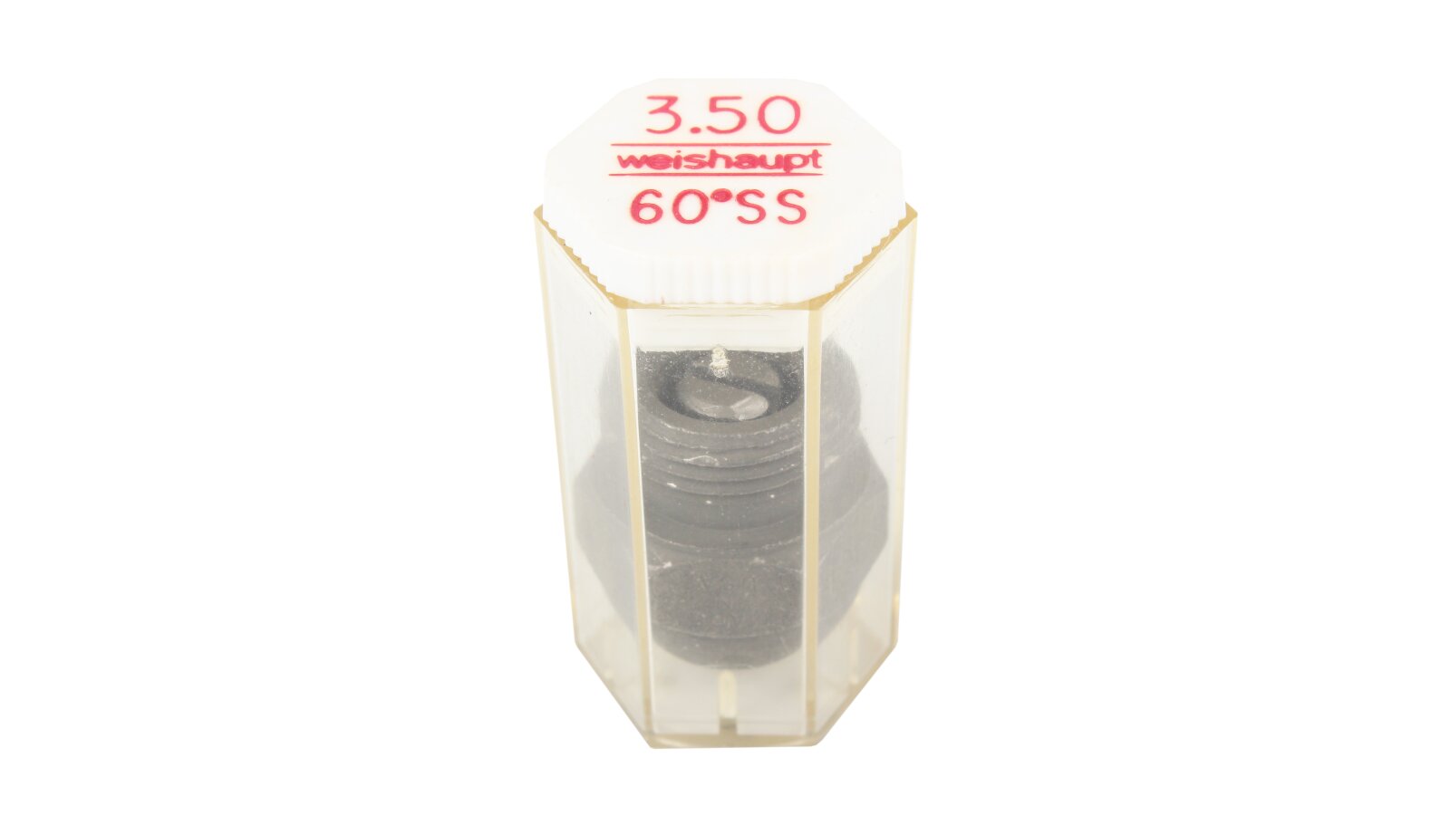 The Weishaupt 3.50/60° SS nozzle is designed to equip domestic and industrial liquid fuel burners. Sprays fuel with a 60° cone with a semi-solid pattern. Capacity: 3.5 gph. Fine uniform atomization improves the miscibility of fuel with air, which ensures the formation of a homogeneous fuel-air mixture that quickly ignites, burns completely with low emissions of harmful substances and a high thermal effect.