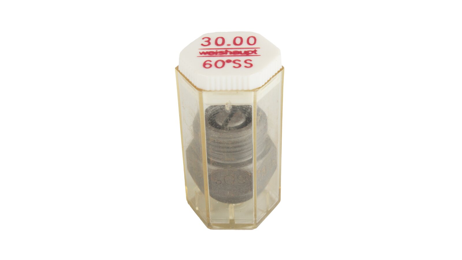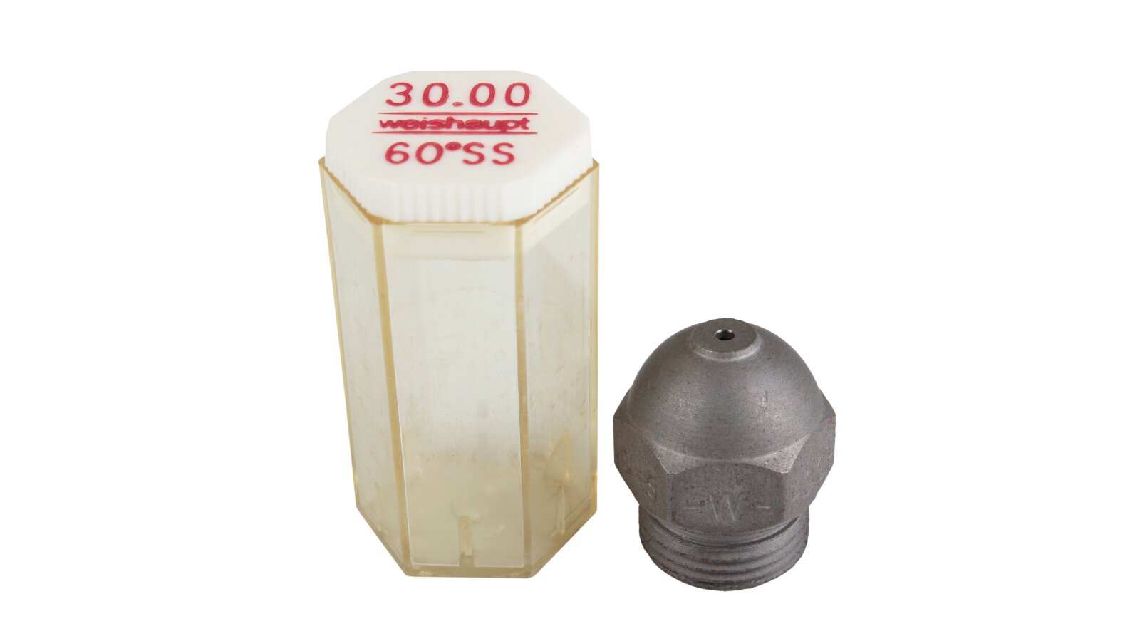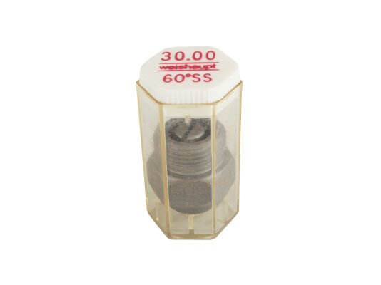The Weishaupt 30.00/60° SS nozzle atomizes liquid fuel with a semi-solid stream. Fuel supply under pressure with uniformly distributed fine particles improves mixing with air, which leads to a reduction in ignition time, complete combustion, and maximum heat output.