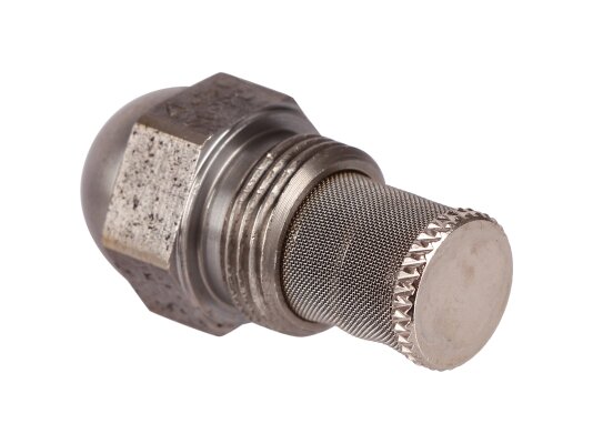 The Weishaupt 4.50/60° PLP nozzle, art. 602217, prepares liquid fuel for clean, efficient combustion. It transforms the fuel into a fine aerosol, which results in the formation of a homogeneous, highly flammable fuel-air mixture. The spray pattern can change depending on the flow rate. To maintain the spray parameters, the nozzle is equipped with a mesh metal filter.