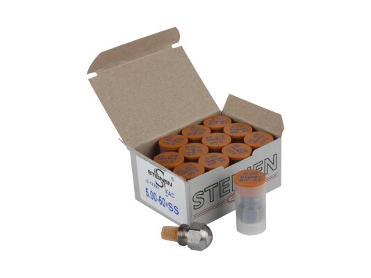 Weishaupt 5.00/60° SS nozzle, art.: 612223 – standard fuel nozzle for universal use. Capable of spraying diesel, boiler fuel, fuel oil, oil. To maintain constant operating parameters and prevent clogging of channels, the nozzle includes a filter with an increased cleaning area.
