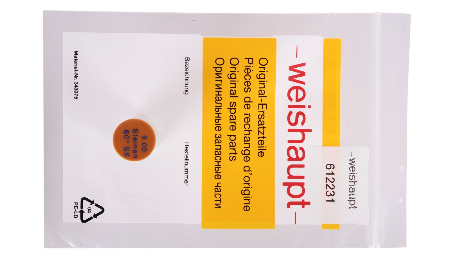 Weishaupt 9.00/60° SS nozzle, art: 612231 – universal atomizer from the Standard series for all types of liquid fuel. Provides flow grinding and uniform distribution of small fuel droplets to form a homogeneous mixture with air. Semi-solid atomization promotes rapid ignition of the combustible mixture and low-noise combustion.