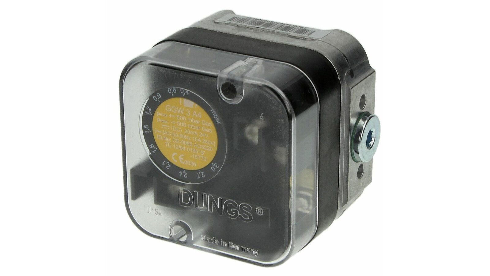 The Dungs GGW 3 A4 pressure switch is manufactured in accordance with EU requirements, certified according to EN 1854, class "S". Suitable for most burner models of popular manufacturers.