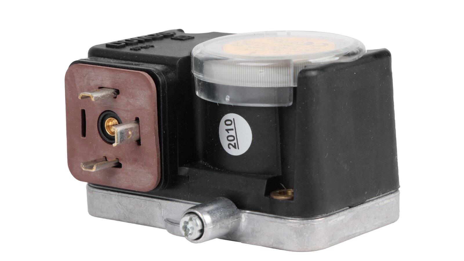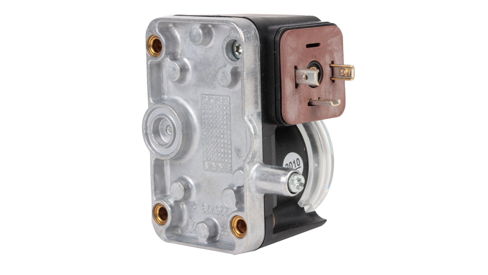 The switch is adjusted manually using an adjustment disk with digital markings. Setting range: from 2 to 10 mbar, response range – 1.5 mbar.