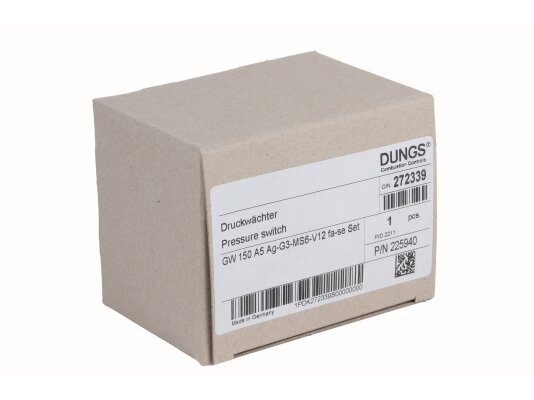 The Dungs GW 150 A5 pressure switch, art: 272339, is used in industrial equipment with a working medium pressure of no more than 500 mbar. Monitors discharge pressure and vacuum pressure. Stable operation, easy to adjust. Compact, gas-tight sensor that meets EN 1854 standards.