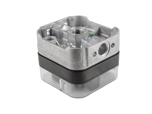 The device has a compact design and a control wheel with digital markings for setting the switching point. Adjustment range: 100 - 500 mbar, response - 15 mbar.