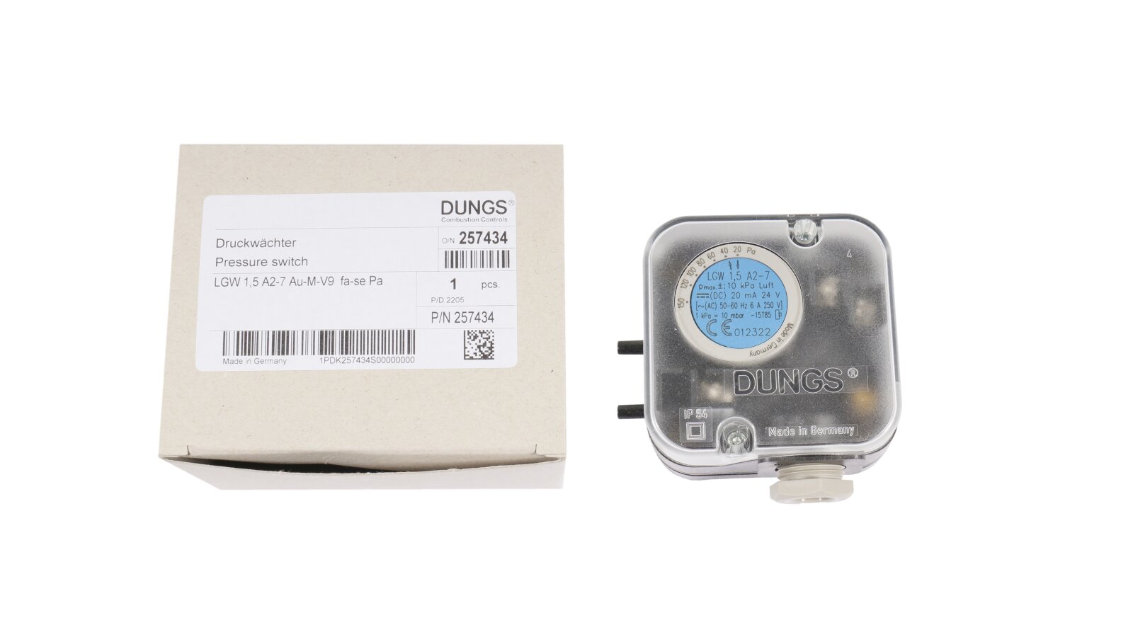 Manufacturer Part Number: 257434Working environment: gas, airOperating ambient temperature: from -15 to 85 °CConnection type: G 1/4", G 1/8"Maximum working pressure: 100 mbarResponse range: from 0 to 0.18 mbarAdjustment range: from 0.2 to 1.5 mbarType of connection: cable entry PG11Degree of protection: IP54For controlling: excess pressure and vacuum pressure