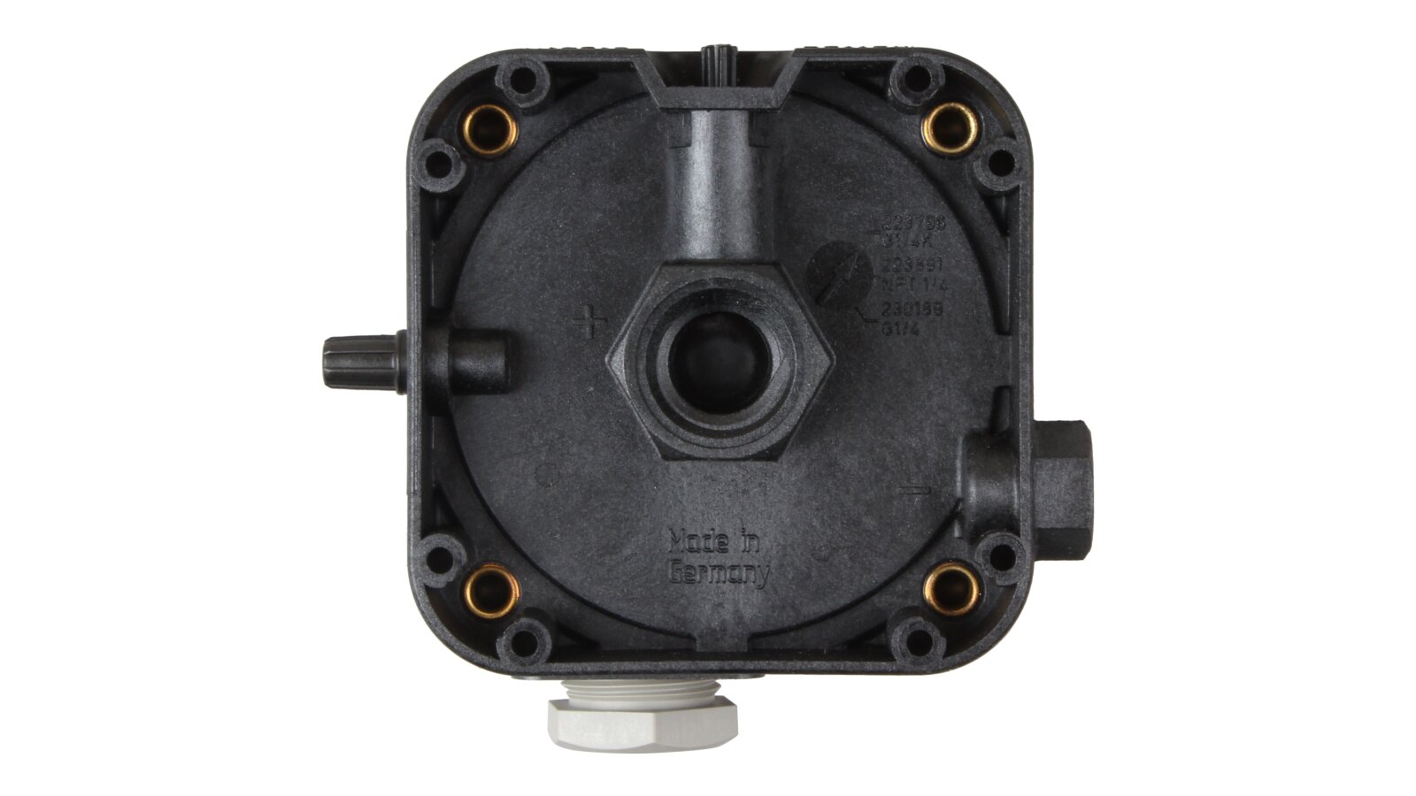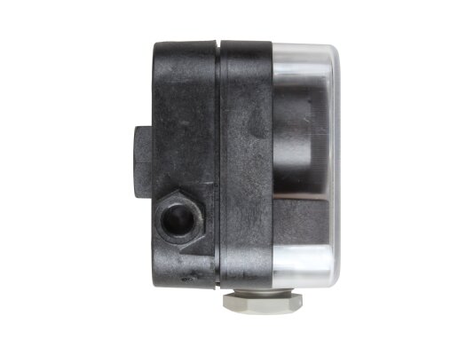 The relay is connected to the thread. The mounting position (recommended) is vertical. With any other orientation, the triggering will occur at a pressure higher/lower than the set one (maximum ± 0.5 mbar).