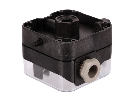 The relay is equipped with a highly sensitive membrane made of NBC. The housing made of high-quality polymer has compact dimensions and meets the IP 54 electrical protection standard. At the customer's request, protection can be increased to IP 65.