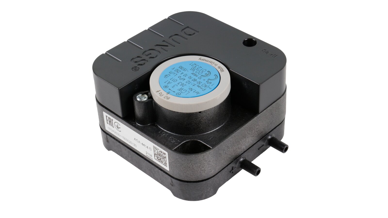 Thanks to the reliable switching system, the relay operates stably at low and high temperatures, from -15 to +85 ° C. Connected using a FASTON connector. Easily adjusted in the permissible range. Factory setting - 0.8 mbar.