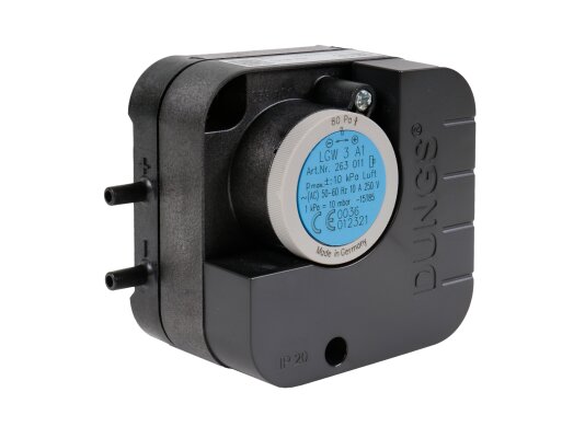 The Dungs LGW pressure switch is used to equip automatic air pressure control systems, non-aggressive gases, excluding technical flammable gases. The sensor is built into furnace units, ventilation units, air conditioning devices.