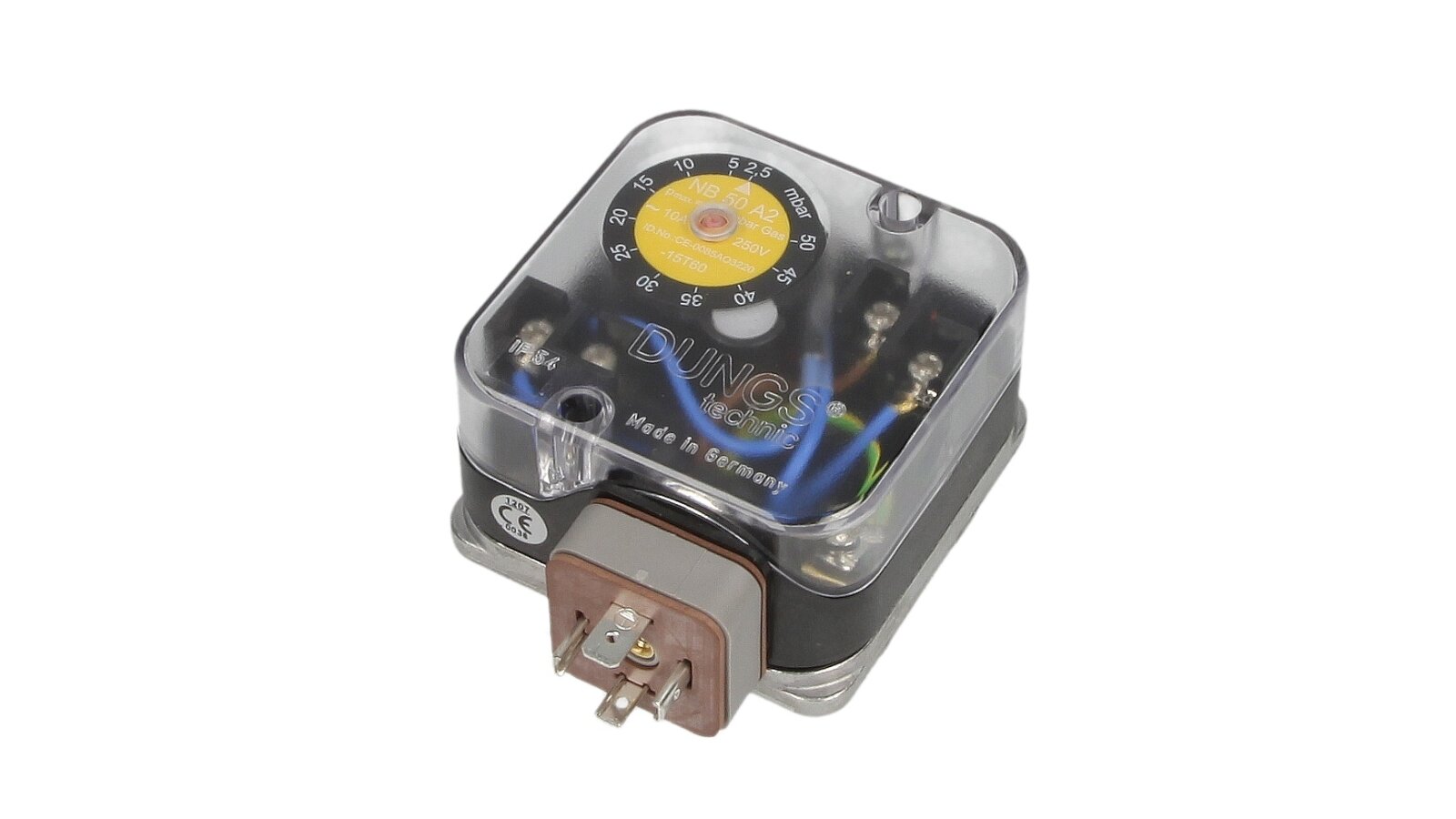 The Dungs UB switching mechanism reacts to excess pressure. No additional energy is needed for the device to operate. When the maximum permissible pressure is exceeded, the electrical network is switched on, switched off, and switched, the signal is transmitted to the control unit. At the same time, the sensor is blocked and the signal lamp is triggered. The relay is released manually by pressing the button in the central part of the adjustment disk.
