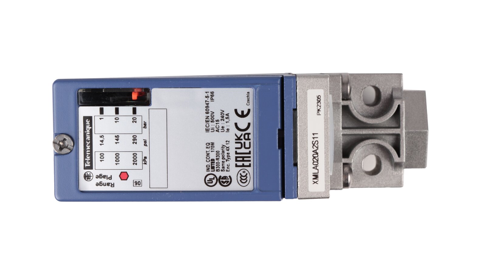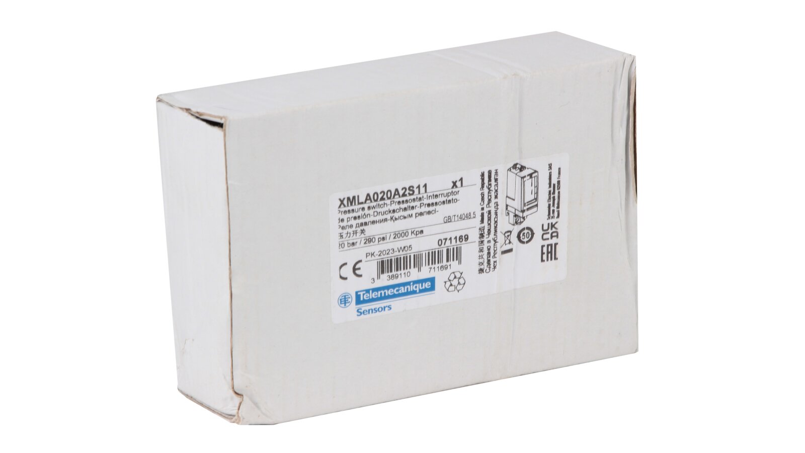 To equip liquid fuel burners, we offer to buy a Telemecanique XMLA020A2S11 liquid fuel pressure switch - a reliable device designed for systems with a maximum permissible pressure of 20 mbar. The device is installed on the burners using a G1/4" connection.