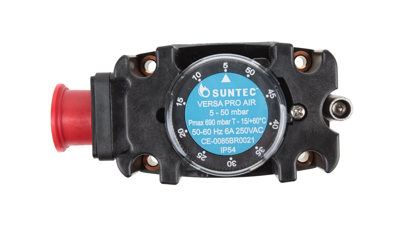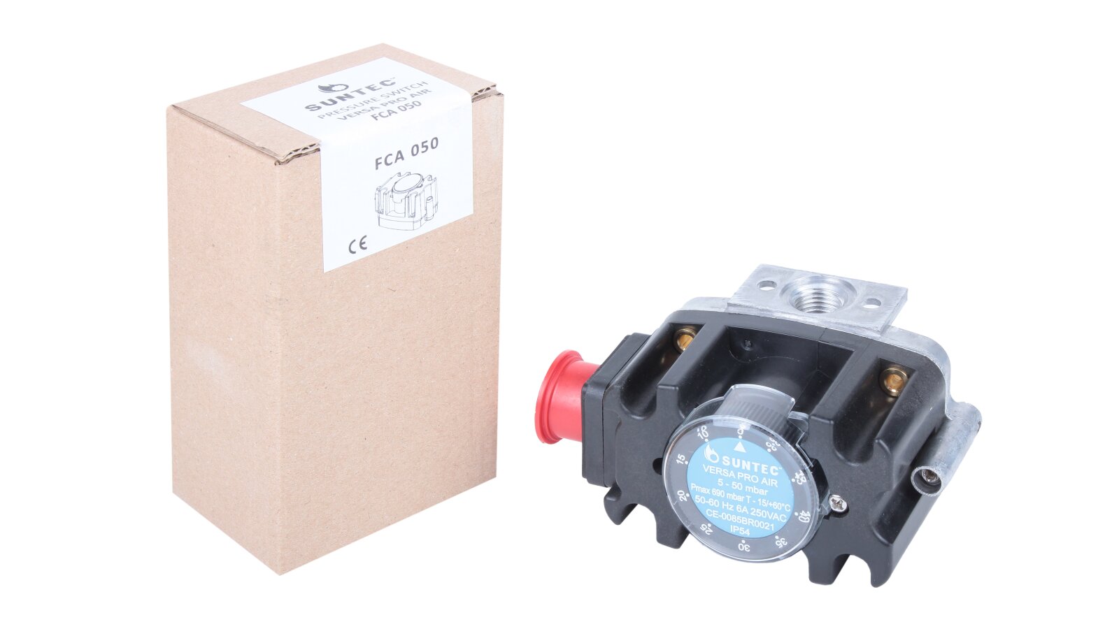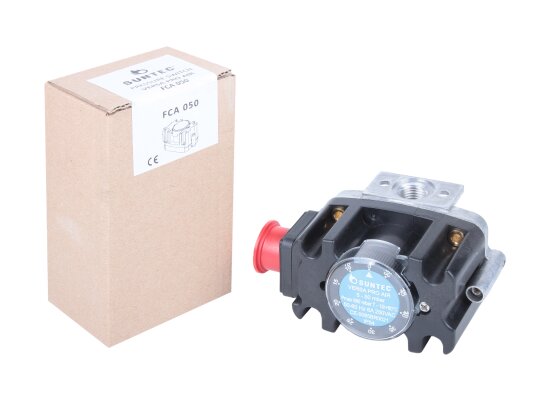 The Suntec FCA 050 pressure switch, art: 8191033050, is used to complete automation systems responsible for air flow control. To adjust the response point in the range from 5 to 50 mbar, the sensor is equipped with a disk regulator with a convenient digital scale. It is used in furnace and ventilation equipment.