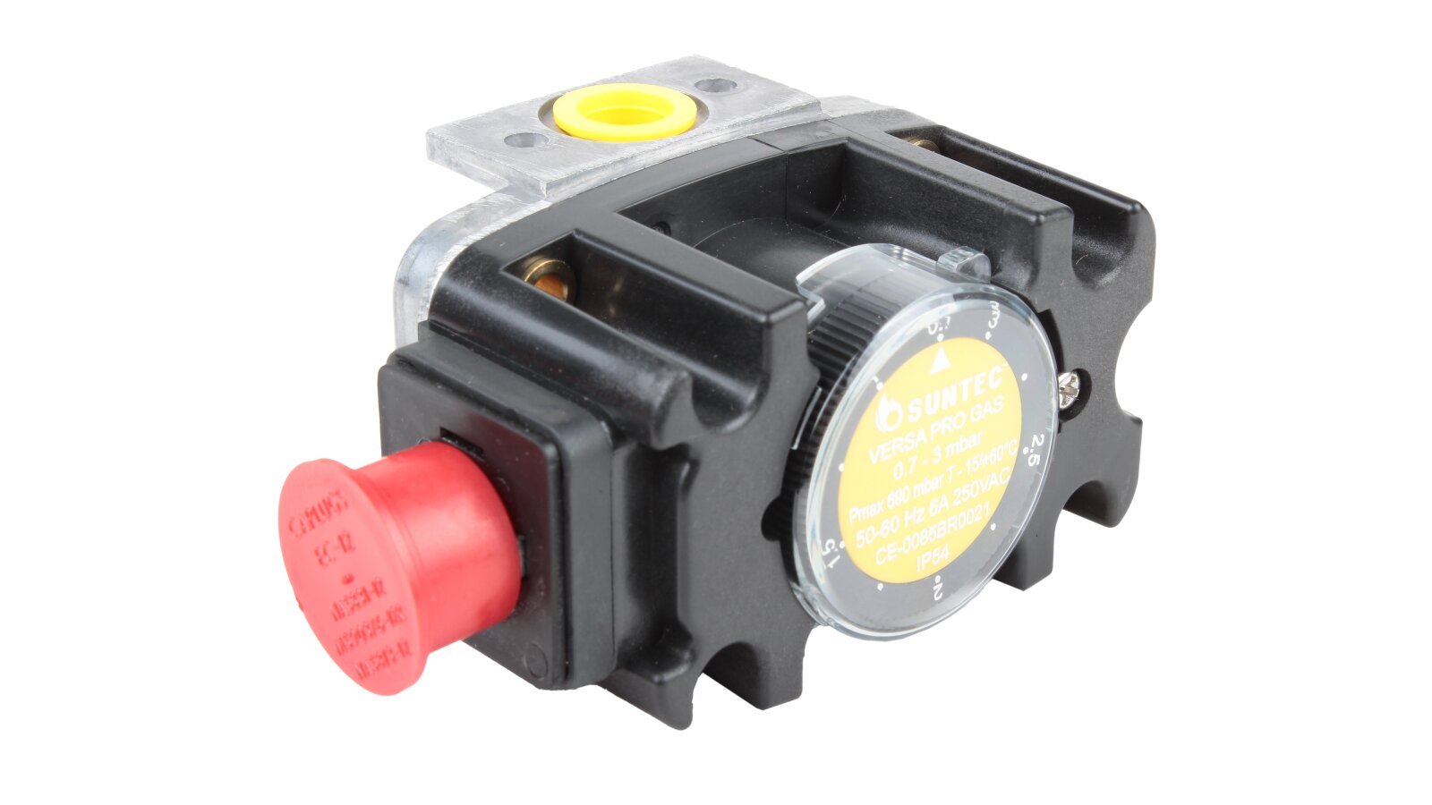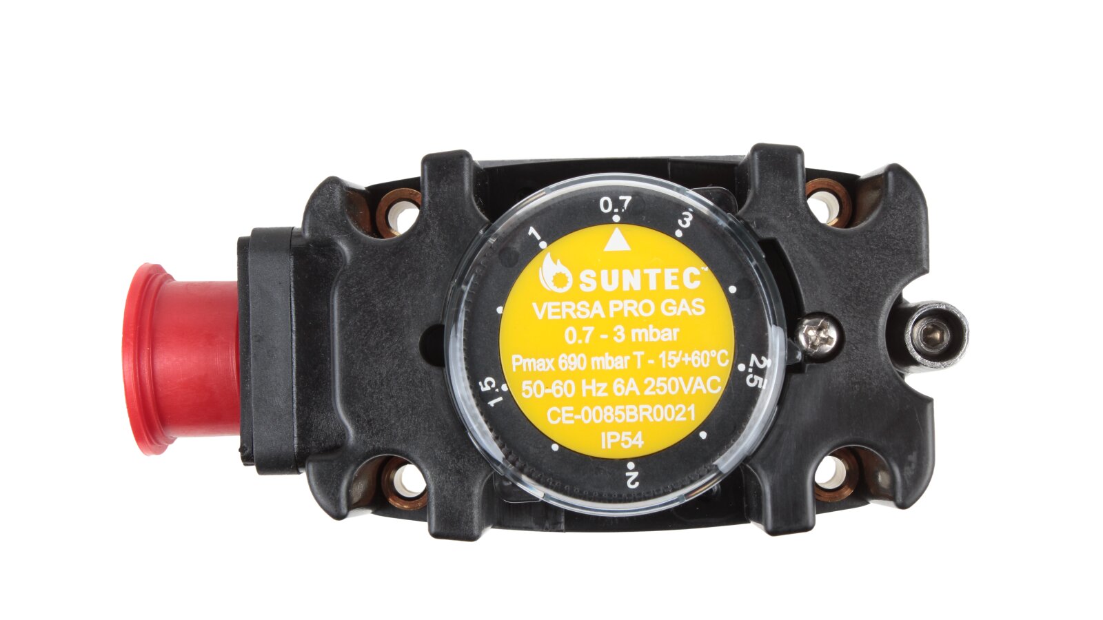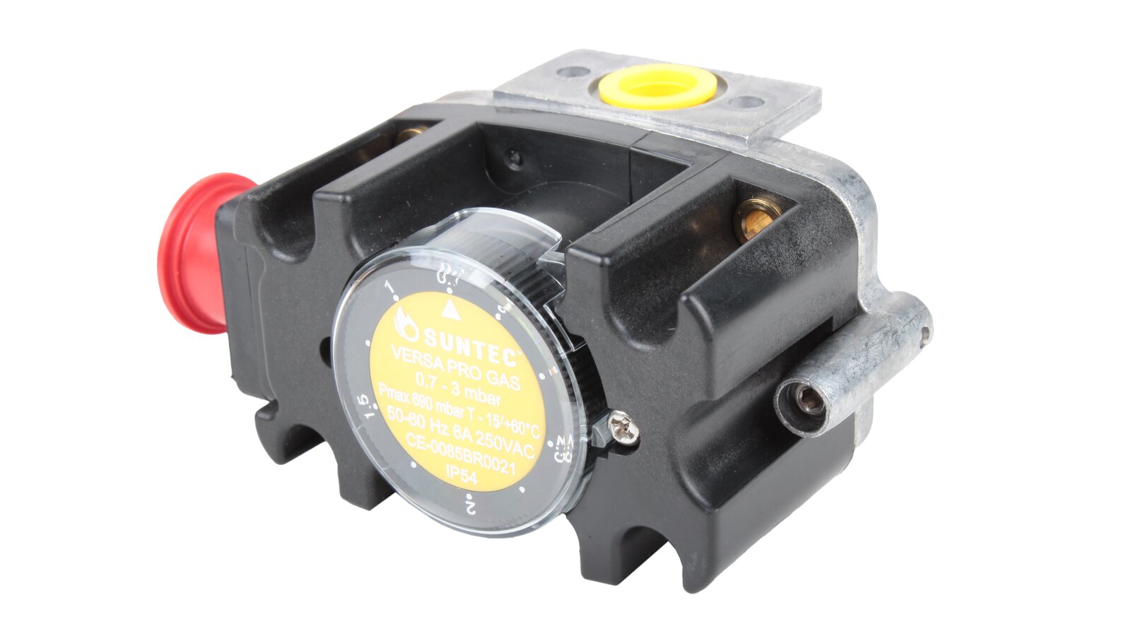 The Suntec FSG 003 pressure switch, art: 8181011003, is certified for operation with gas of the I-III family according to EN 437 standards. It is built into automatic flow control and regulation systems during operation of industrial combustion equipment. The switching mechanism responds to changes in excess and vacuum pressure, closing the contacts if the gas pressure falls below or rises above the specified limit.
