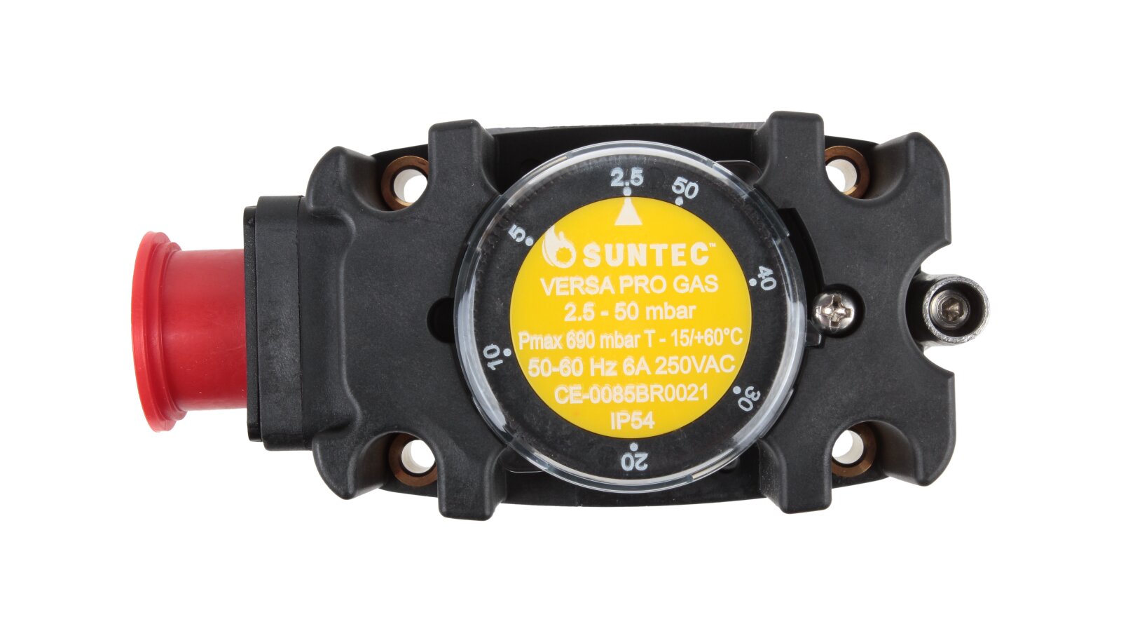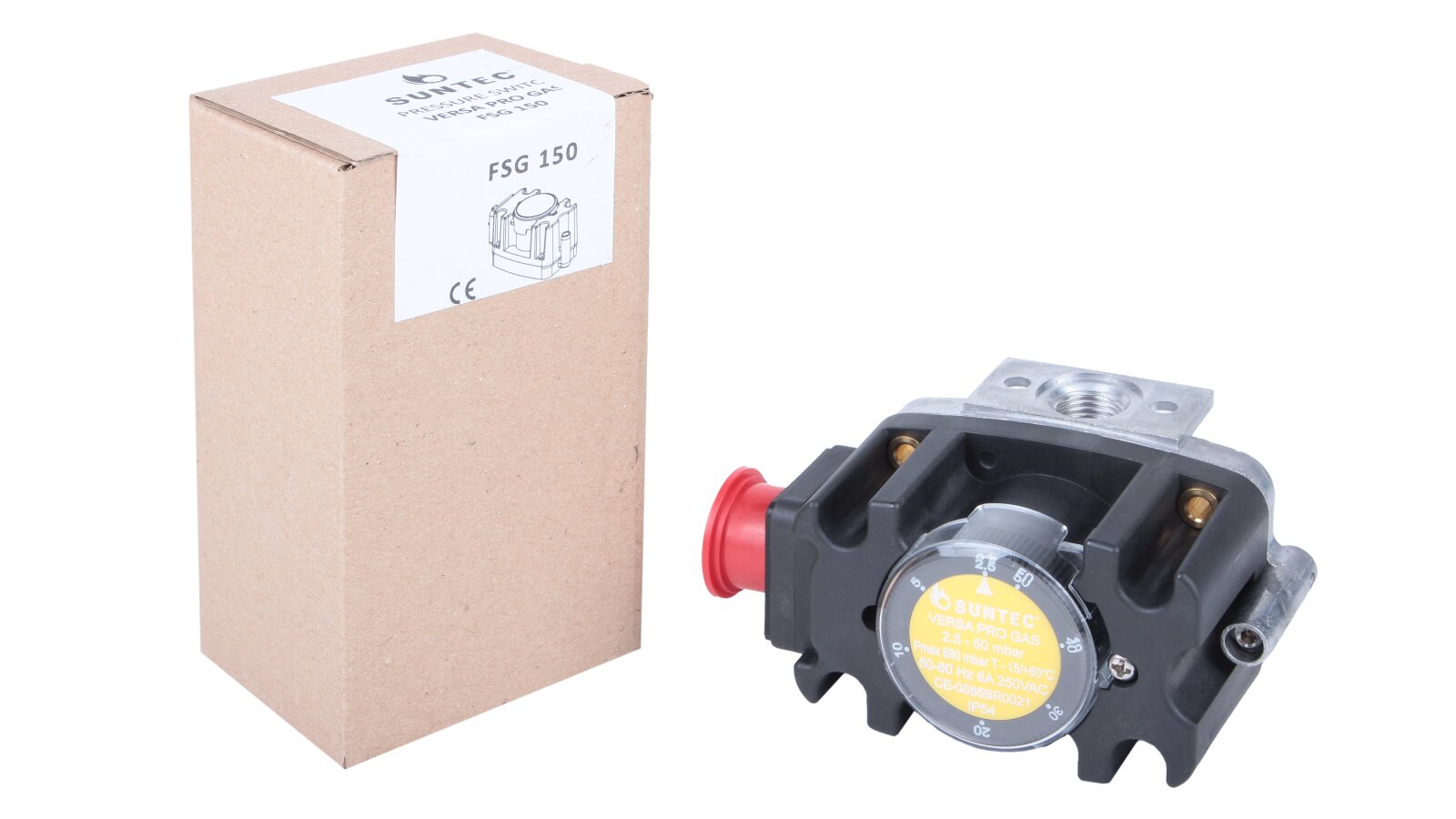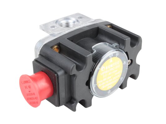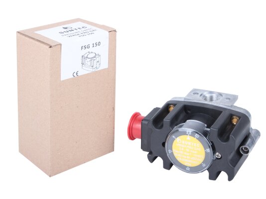 The Suntec FSG 150 pressure switch, art: 8181014150, is sensitive to changes in excess pressure and vacuum pressure. Suitable for industrial gas installations with pressures up to 690 mbar. The sensor with adjustable switching parameters and response accuracy is characterized by stable operation, compact dimensions, a high level of dust and moisture protection, and reliability in operation. The relay closes or opens contacts when the pressure drops below or rises above the set value.