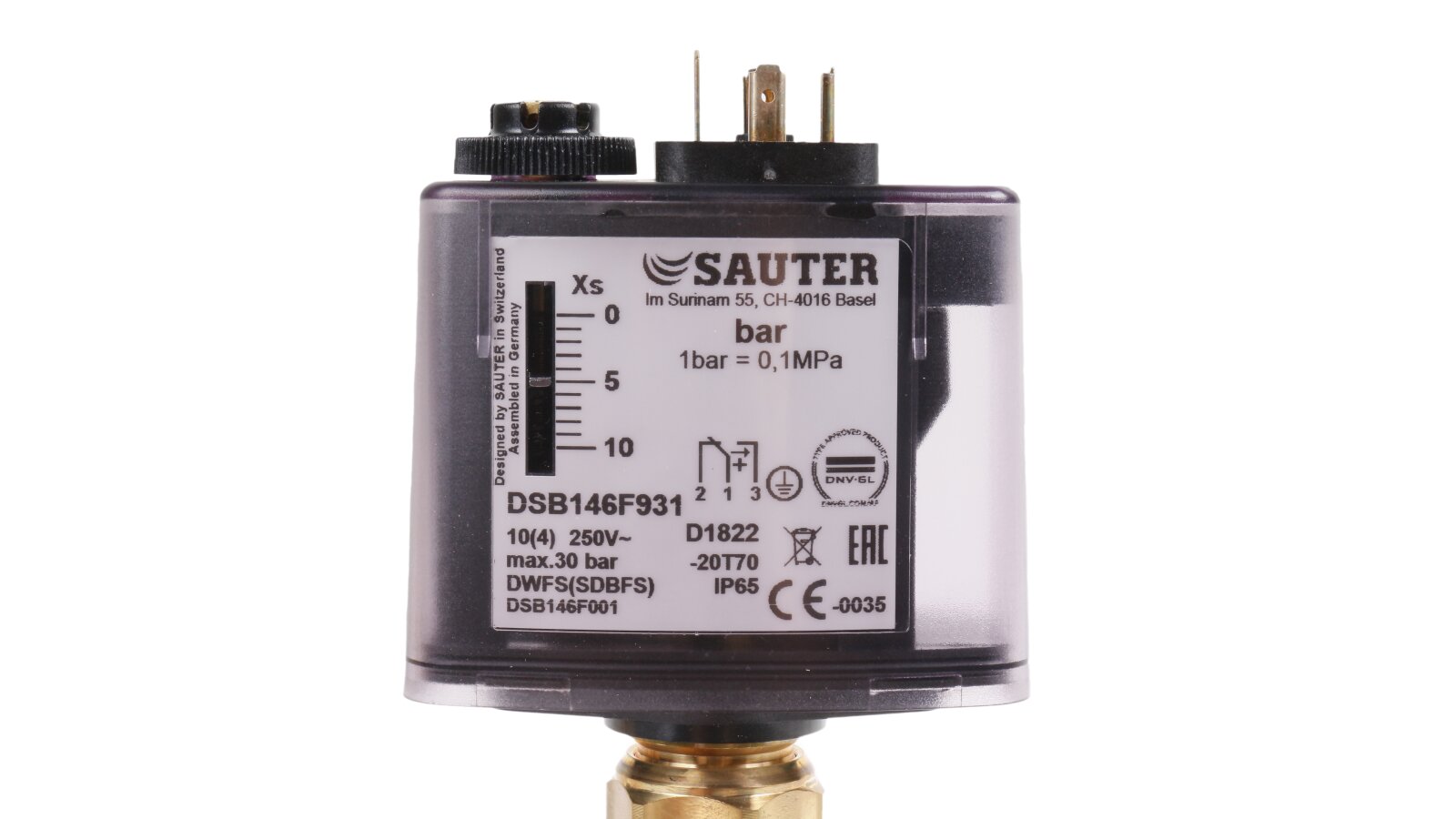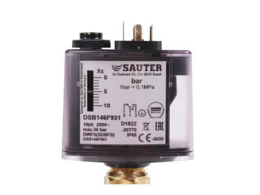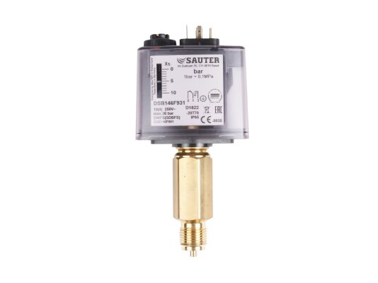 Pressure switch Sauter DSB146F931, art: 640102 is used in automatic control and regulation systems for air and neutral gas flows during industrial equipment operation. Manufactured in accordance with European quality and safety standards.